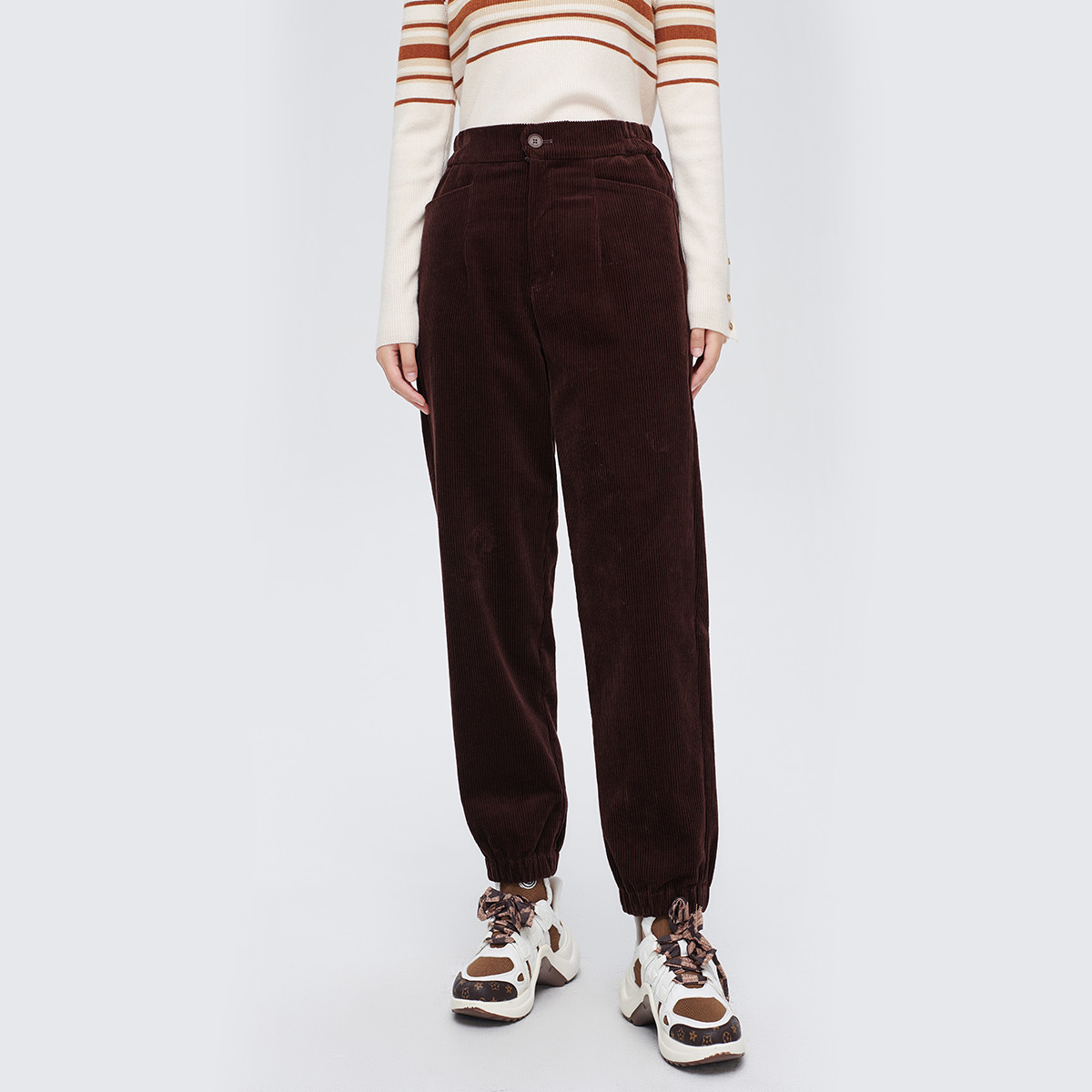 时尚休闲灯芯绒束脚裤女高腰羽绒裤女可外穿保暖女式束脚九分裤 459094