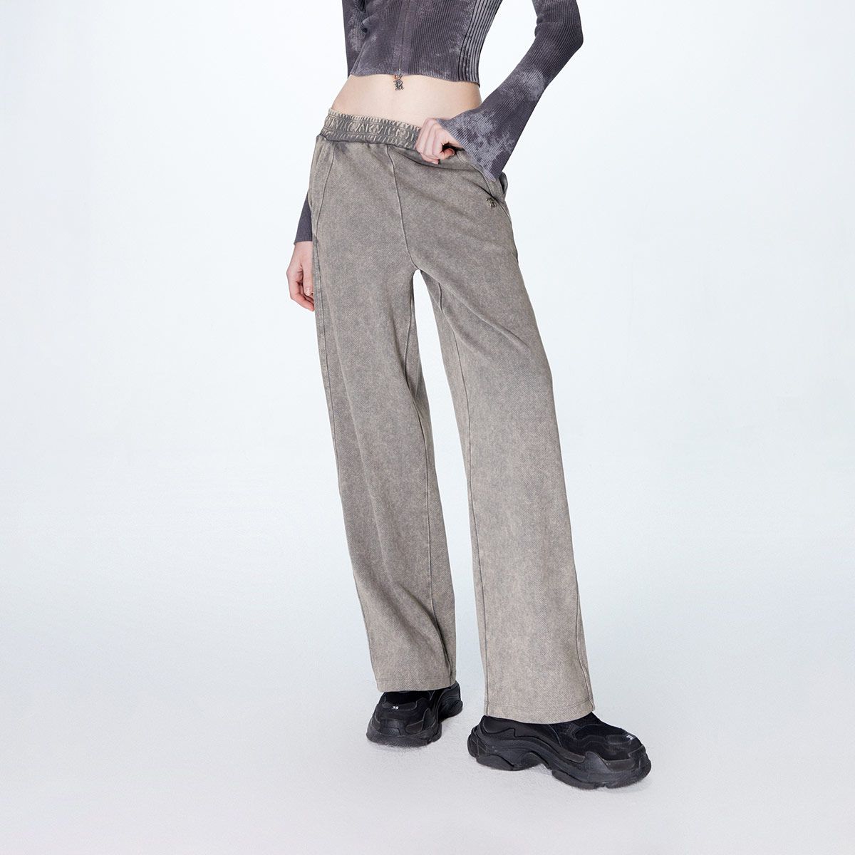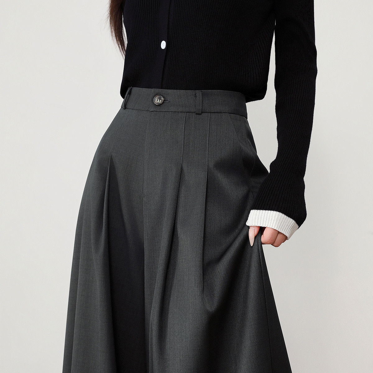 【智感低饱和】春秋智性通勤连腰拼接撞色长裤双折磨毛女式休闲裤 417985