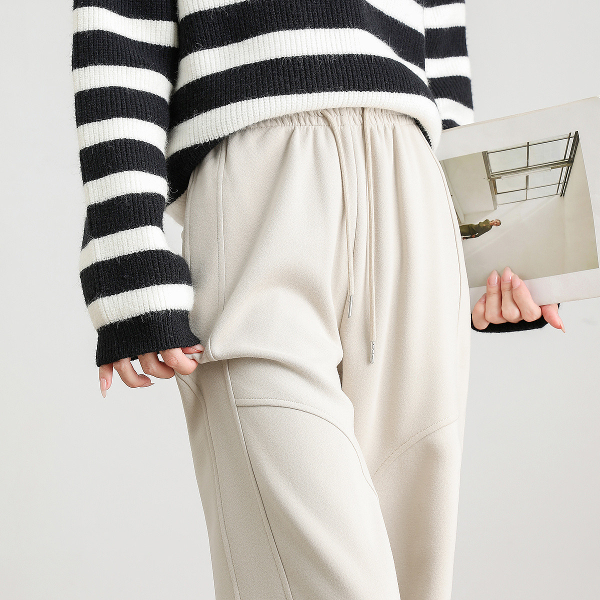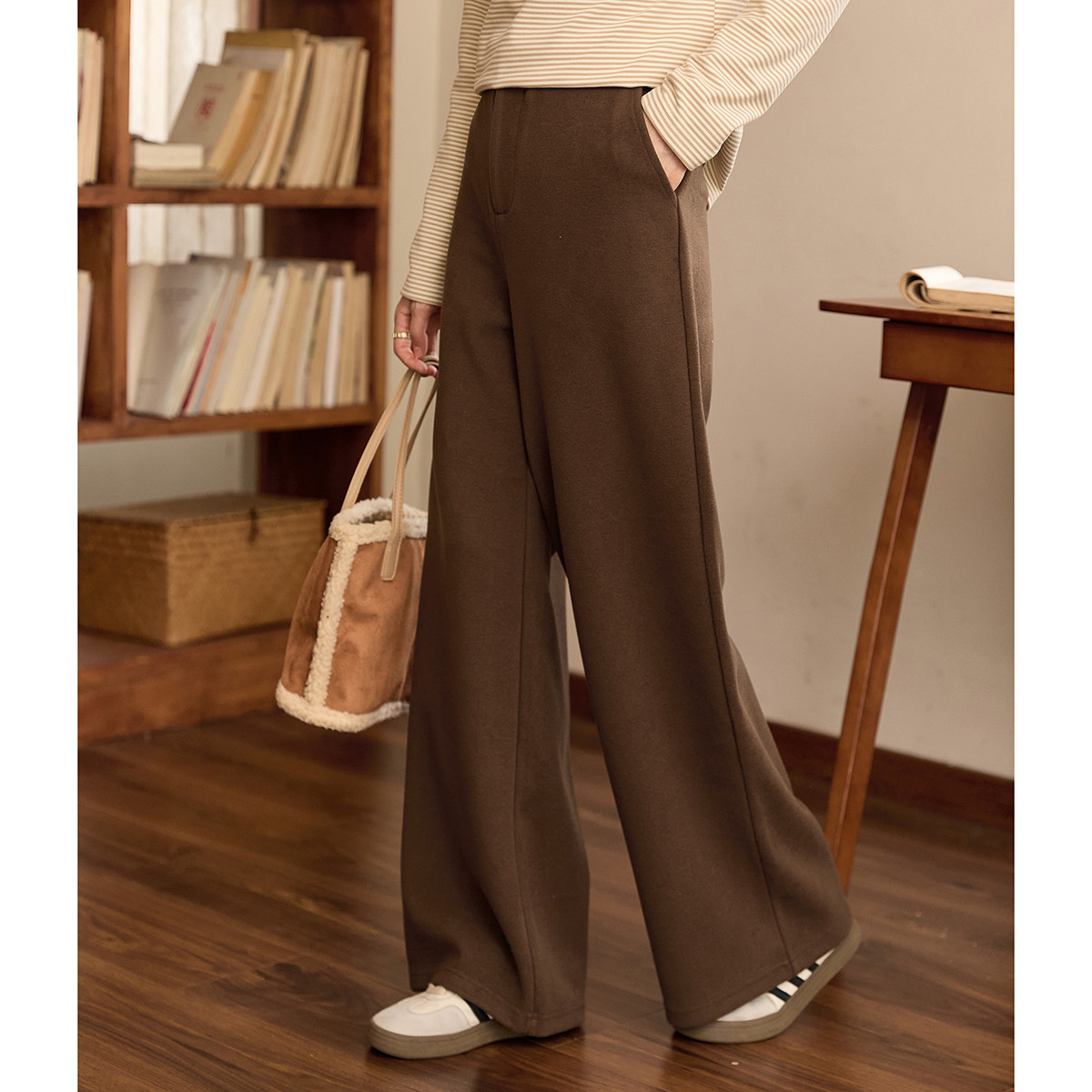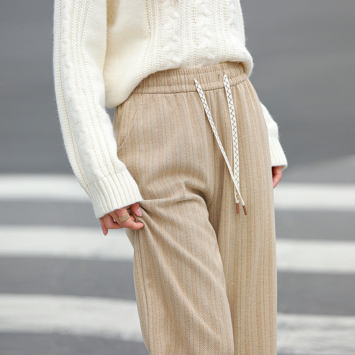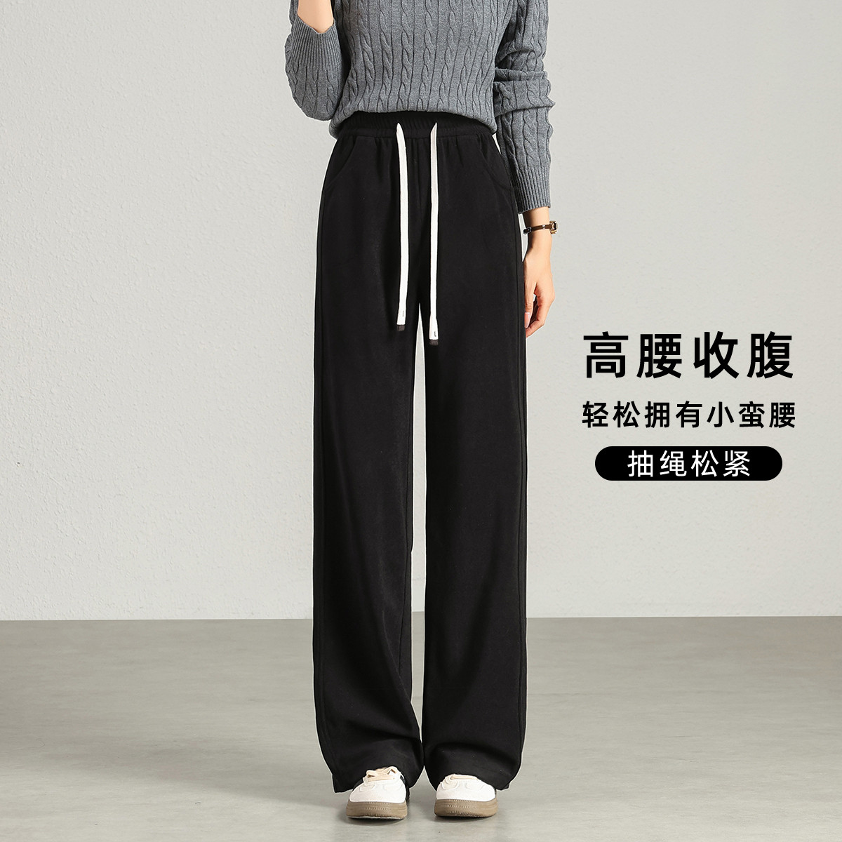 【含羊毛】美拉德阔腿裤女加厚春夏时髦保暖系绳休闲裤 744543