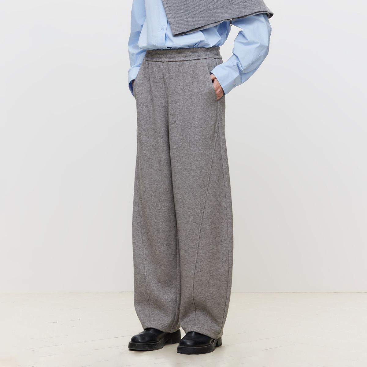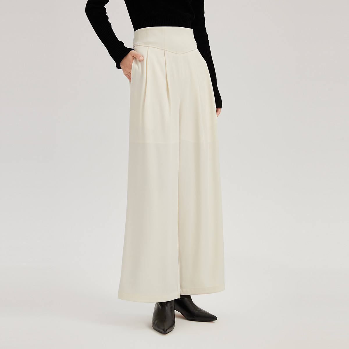 【看不见腿型】冬简约风都市漫游设计感褶裥阔腿藏肉舒适休闲裤 050369