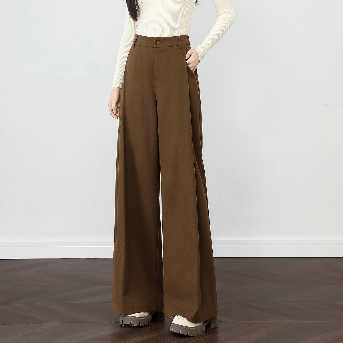 春装 进口精纺呢宽松垂感显瘦直筒裤西装裤阔腿裤女 791439