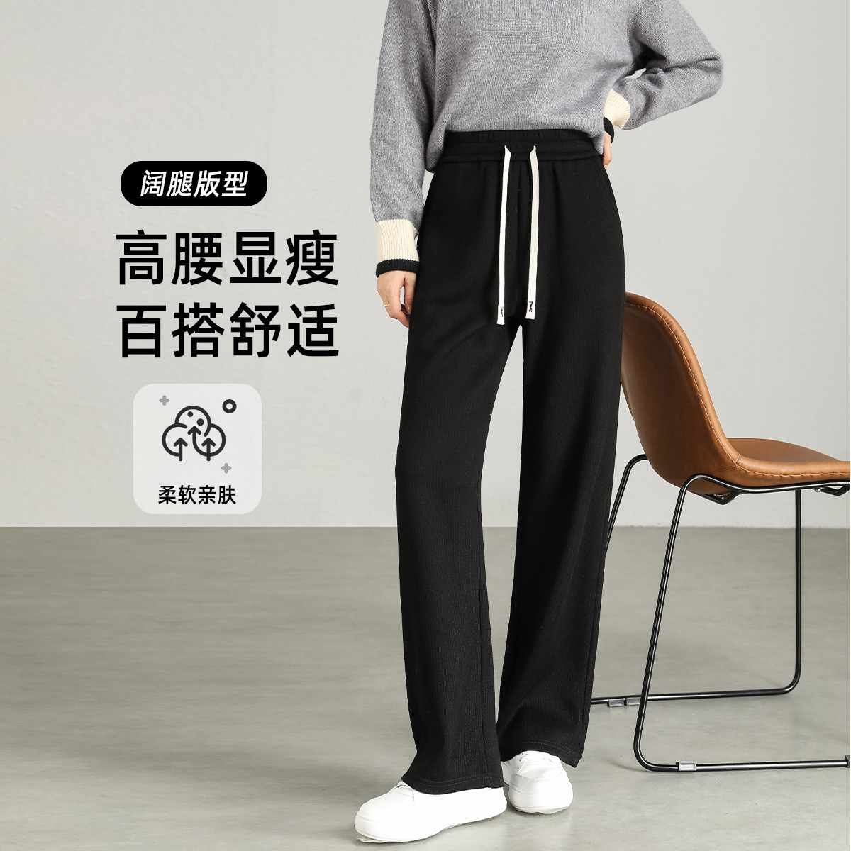 【宽松针织】夏季舒适通勤长裤阔腿裤休闲裤女 456282