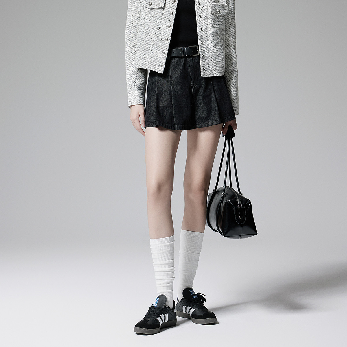 黑标系列 夏装肌理感高腰直筒加厚短裤女 609991