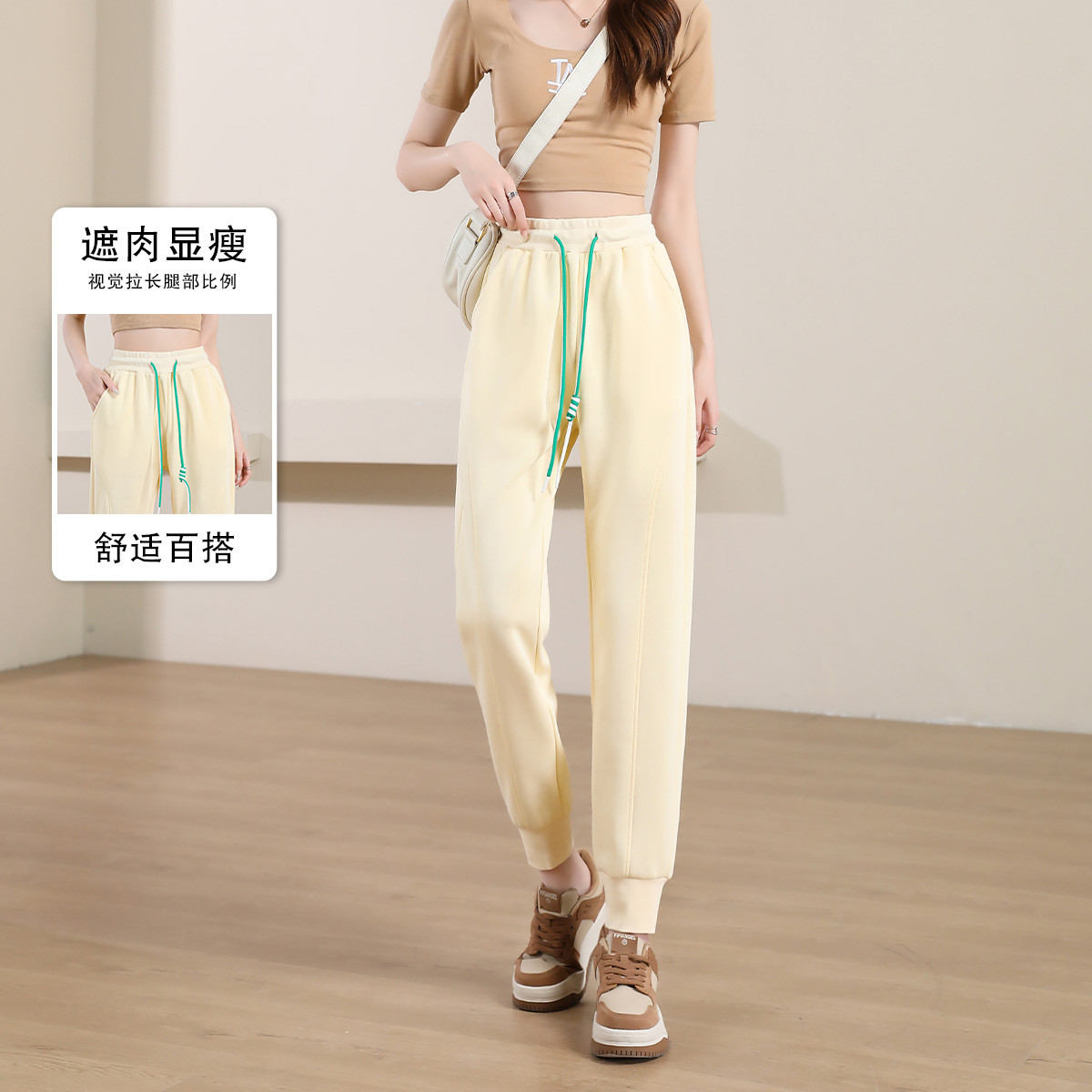 【梨形天菜】秋季复古松紧高腰抽绳自然垂顺遮肉好搭女式休闲裤 767425
