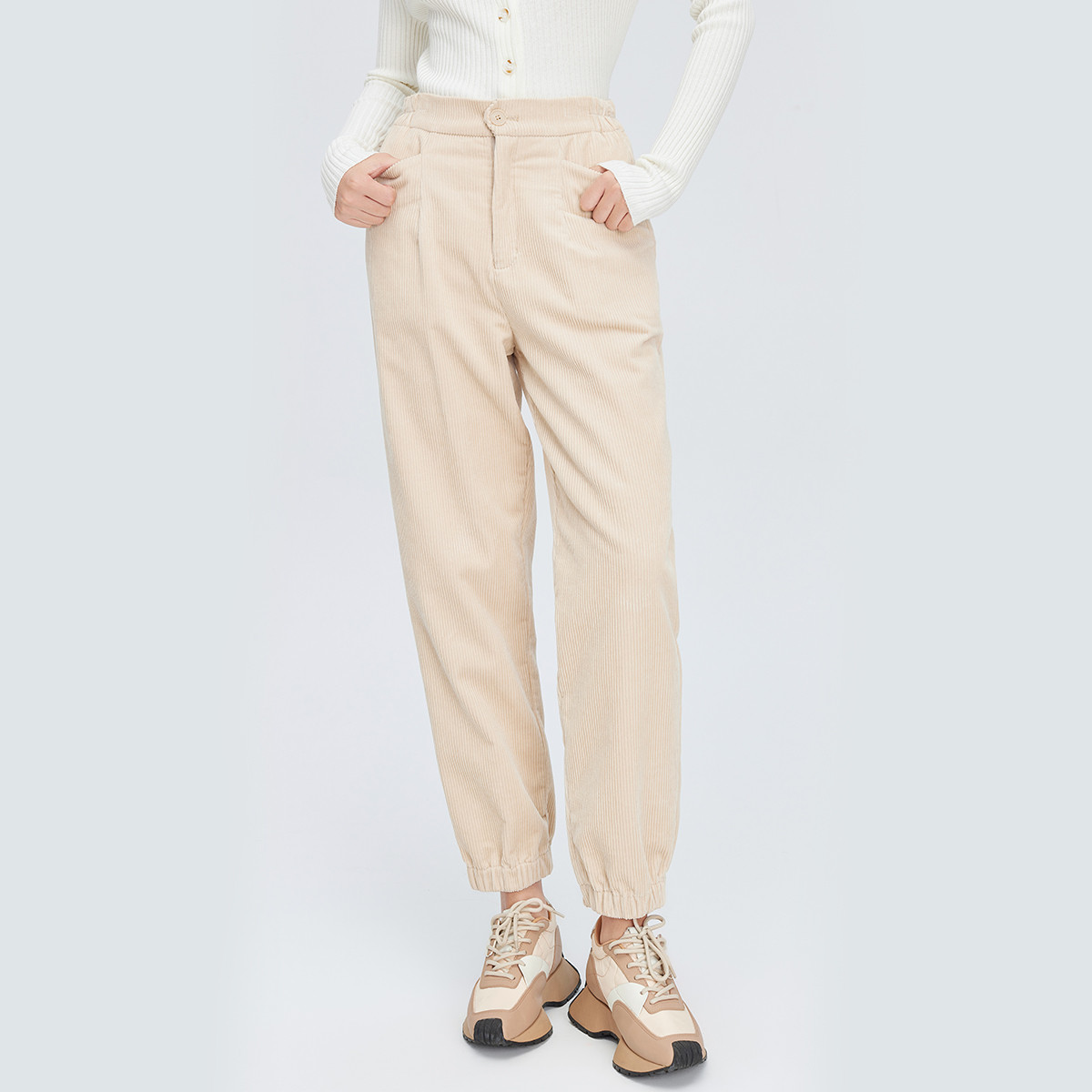 时尚休闲灯芯绒束脚裤女高腰羽绒裤女可外穿保暖女式束脚九分裤 454998