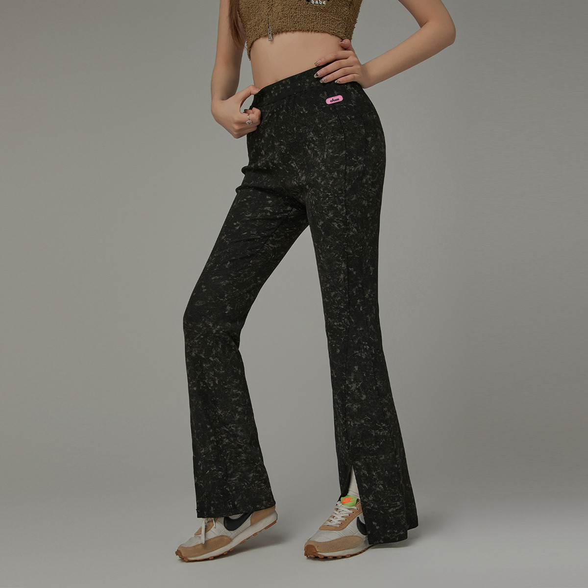 扎染开叉微喇休闲裤女春秋设计感别致喇叭裤长裤 905747