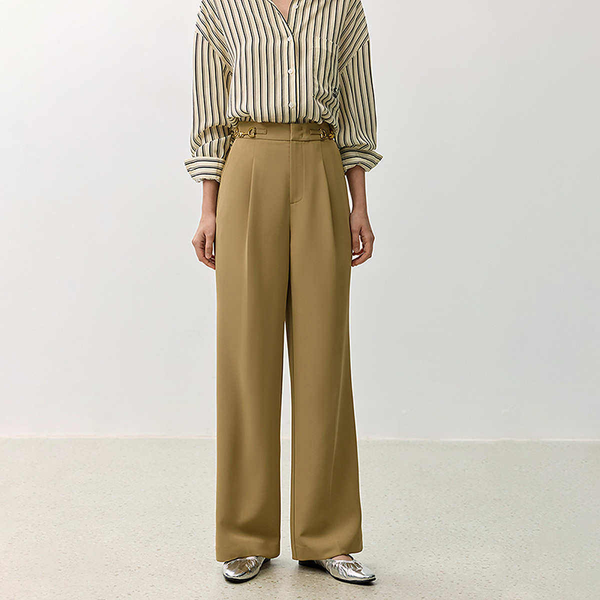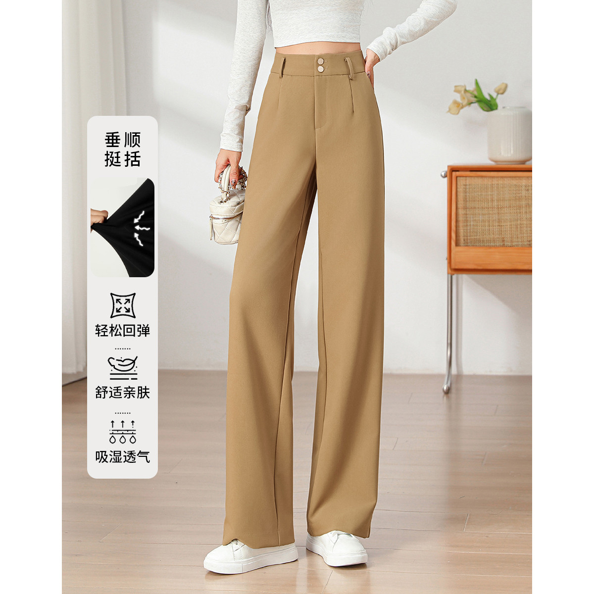 裤子女春季款时尚百搭设计感微阔高腰直筒拖地裤西装休闲裤女 334107