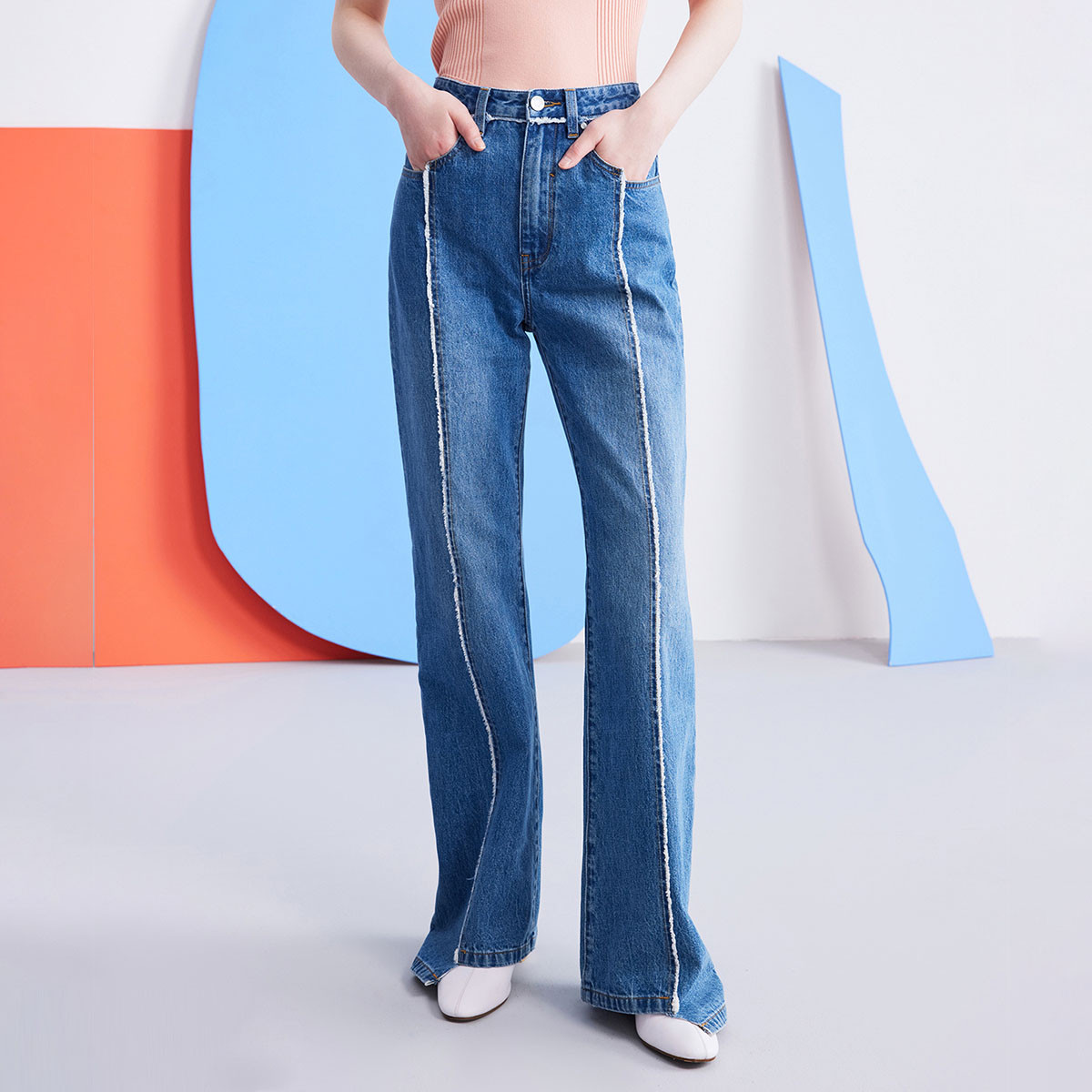 PORTS PURE宝姿女装不对称磨边水洗简约休闲牛仔裤 756170
