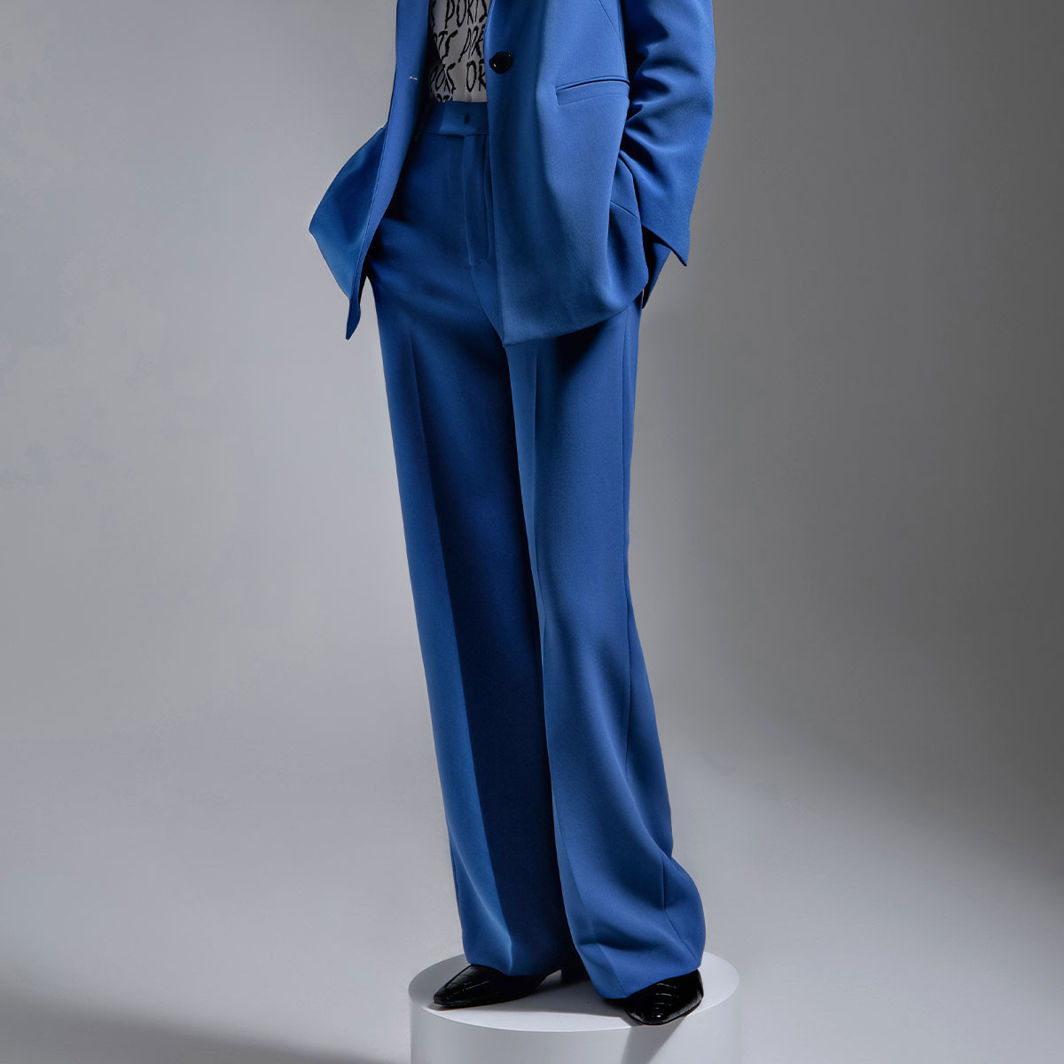 宝姿PORTS女装变奏蓝三醋酯简洁精妙干练利落直筒裤 817674