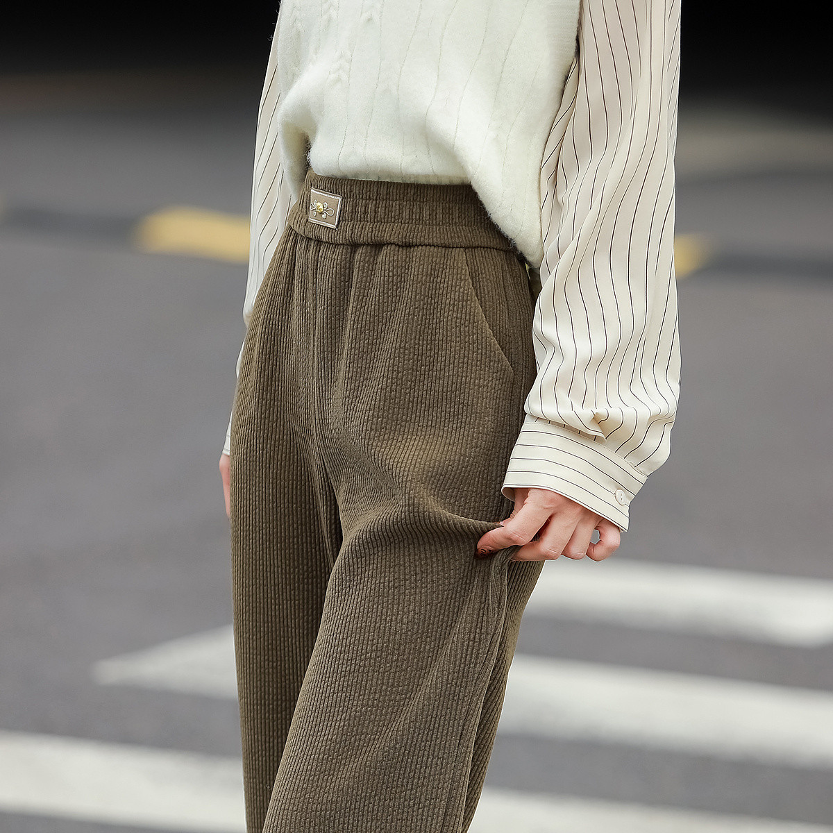 【行走的松弛感】秋季复古藏肉松紧高腰高频好搭时髦女式休闲裤 160641
