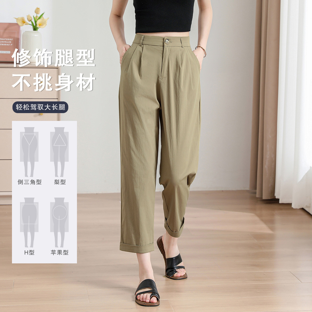 垂感裤女春季通勤职业显瘦九分百搭气质休闲锥形裤 964952