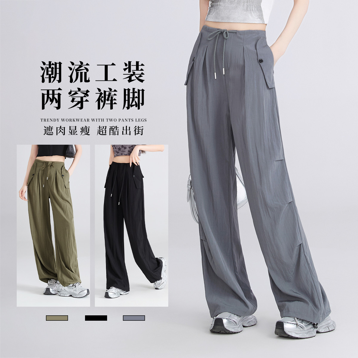 夏季薄款透气工装山本裤一裤多穿抽绳&捏褶设计女款阔腿休闲长裤 008769