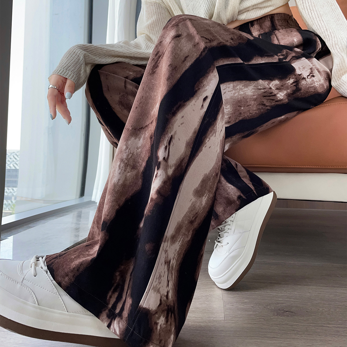 【国风泼墨扎染阔腿裤】新中式潮流显瘦窄版直筒裤小个子长裤女 084609