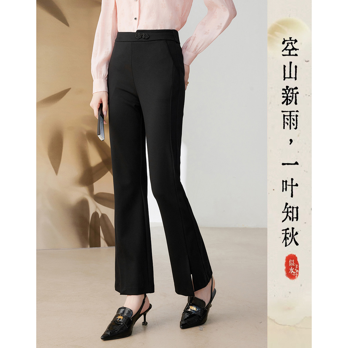 黑色西装喇叭裤女春小个子修身开叉 147224