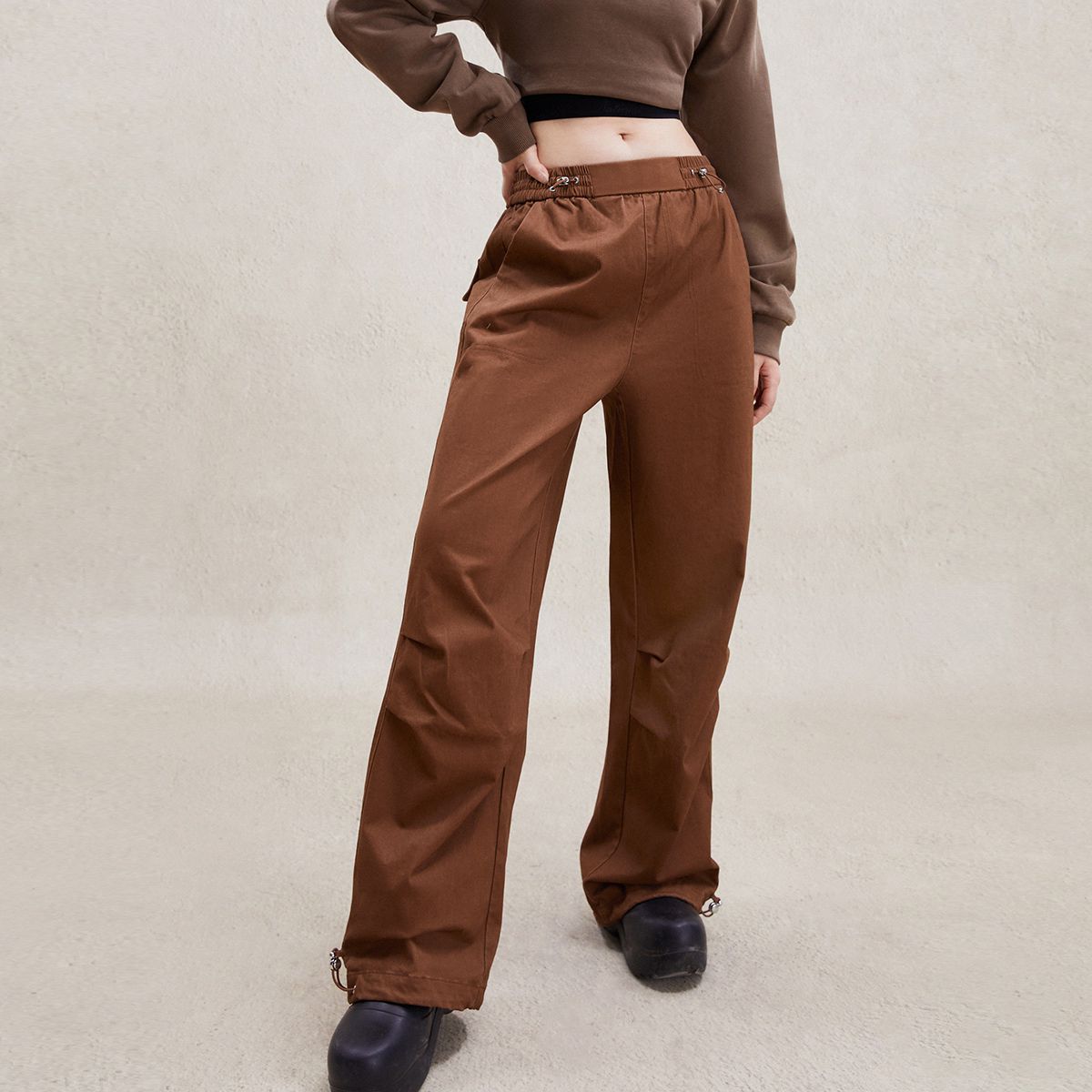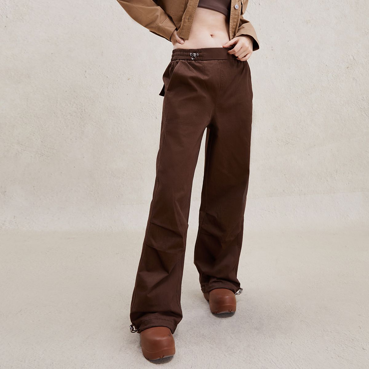 米子旗春夏季款宽松休闲长裤松紧腰口袋设计阔腿裤 096538