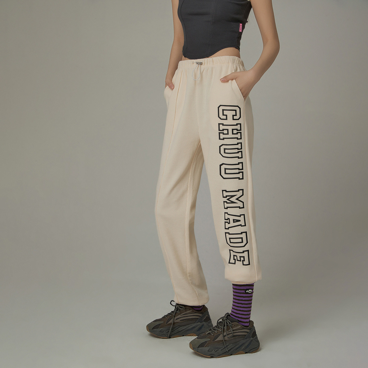 字母束脚休闲裤女士夏高腰华夫格印花长裤子 319443