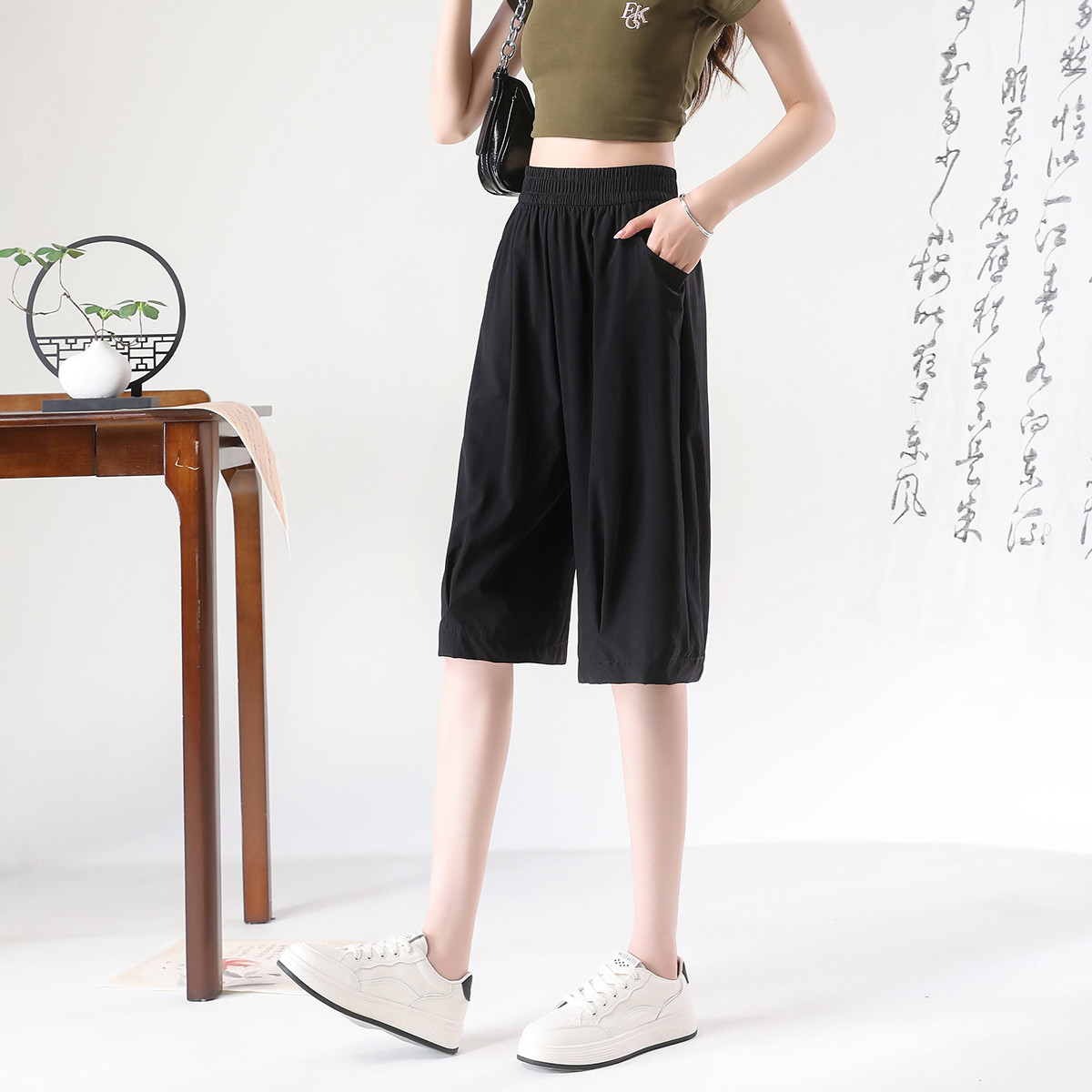 过膝六分裤高腰直筒短裤夏季轻薄冰丝显瘦宽松休闲裤 336856