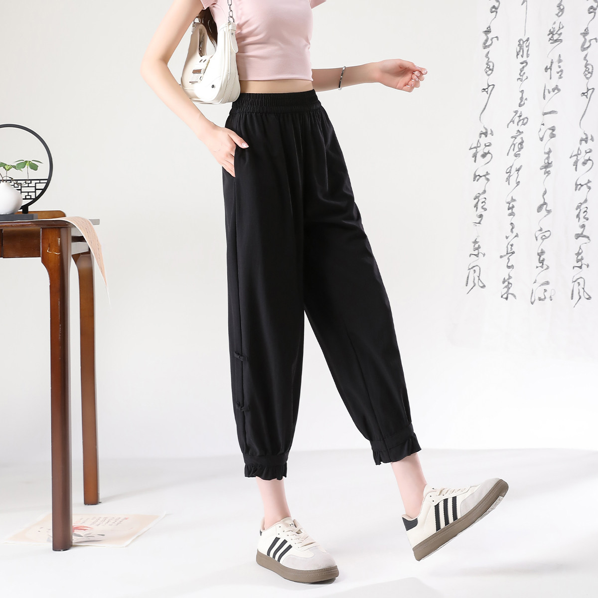 夏季时尚百搭轻薄束脚休闲裤冰丝轻薄高腰八分灯笼裤 320472