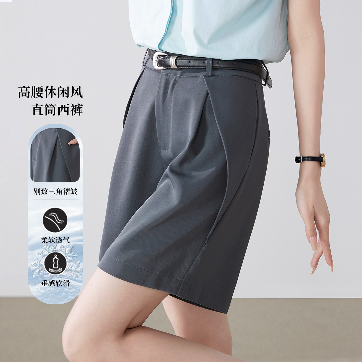 【设计感高腰西装短裤】通勤日常a字遮胯显瘦休闲中裤女士短裤 827265