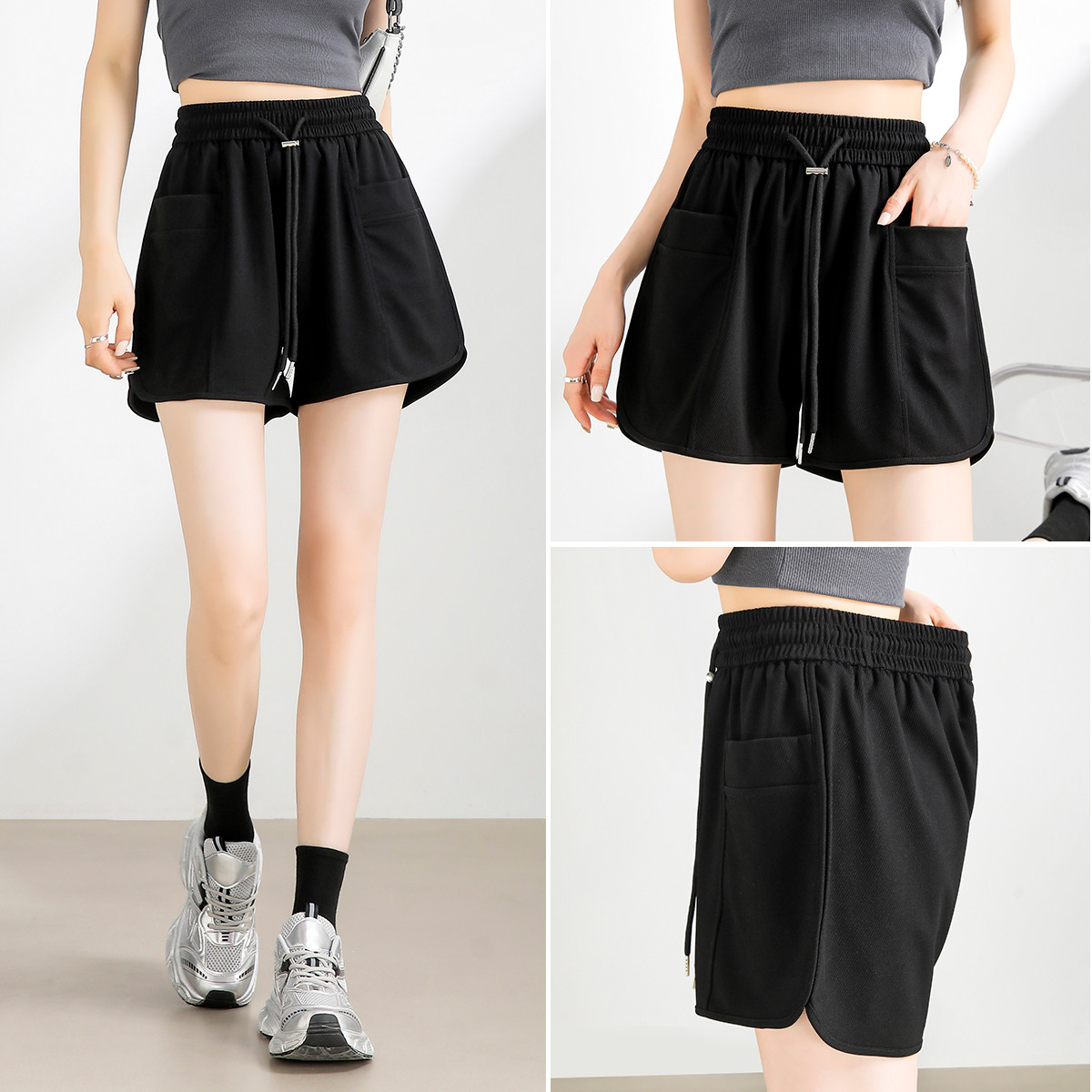 米子旗夏季高腰纯色女式休闲裤宽松显瘦运动风薄款短裤阔腿裤 572506