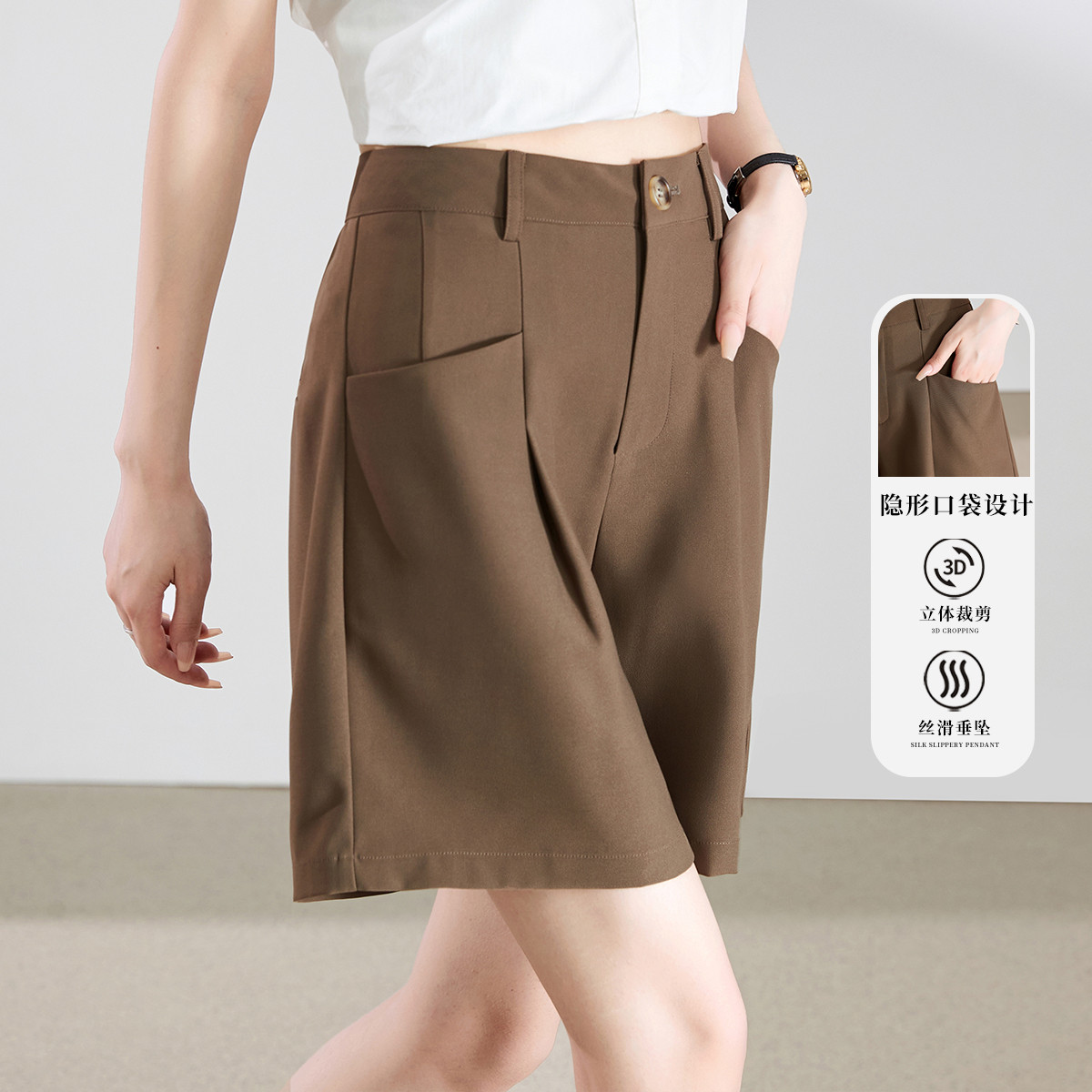 【美拉德色系】A字显瘦阔腿西装短裤日常通勤高腰宽松女款五分裤 380033