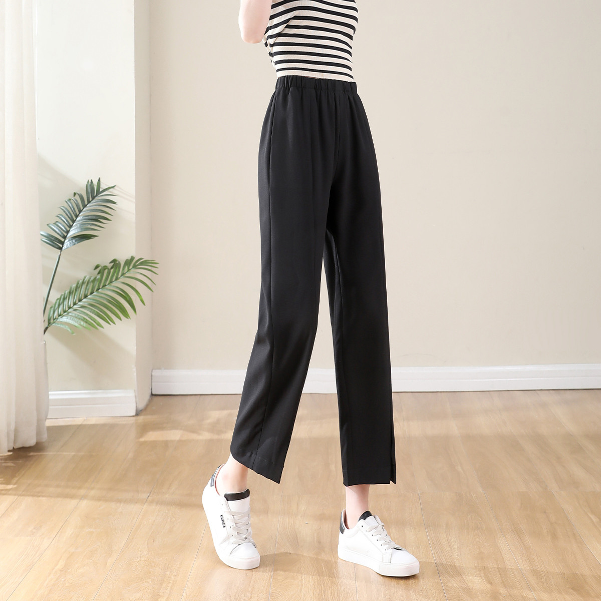 夏季薄款透气高腰气质时尚通勤百搭金属装饰直筒休闲裤女 793439