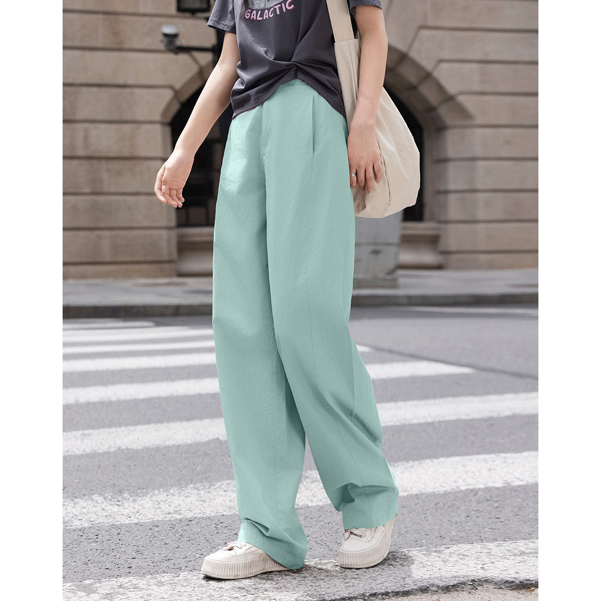 玖姿旗下安娜蔻系列都市休闲百搭松紧腰舒适直筒裤女装夏季 112012