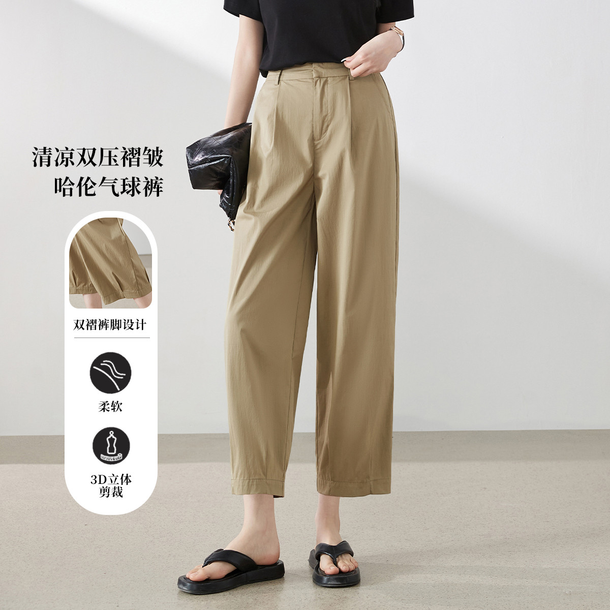 【轻盈透气】速干裤简约通勤高腰藏肉显瘦亲肤柔软九分休闲裤女 921759