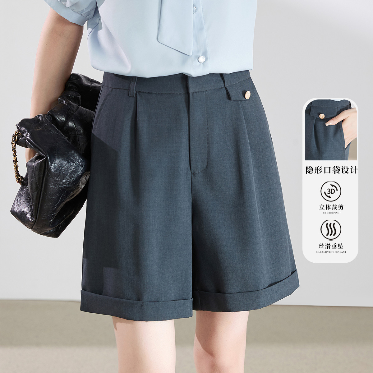 【小众精致通勤风】气质金属扣装饰高腰阔腿西装短裤五分裤女款夏 306305
