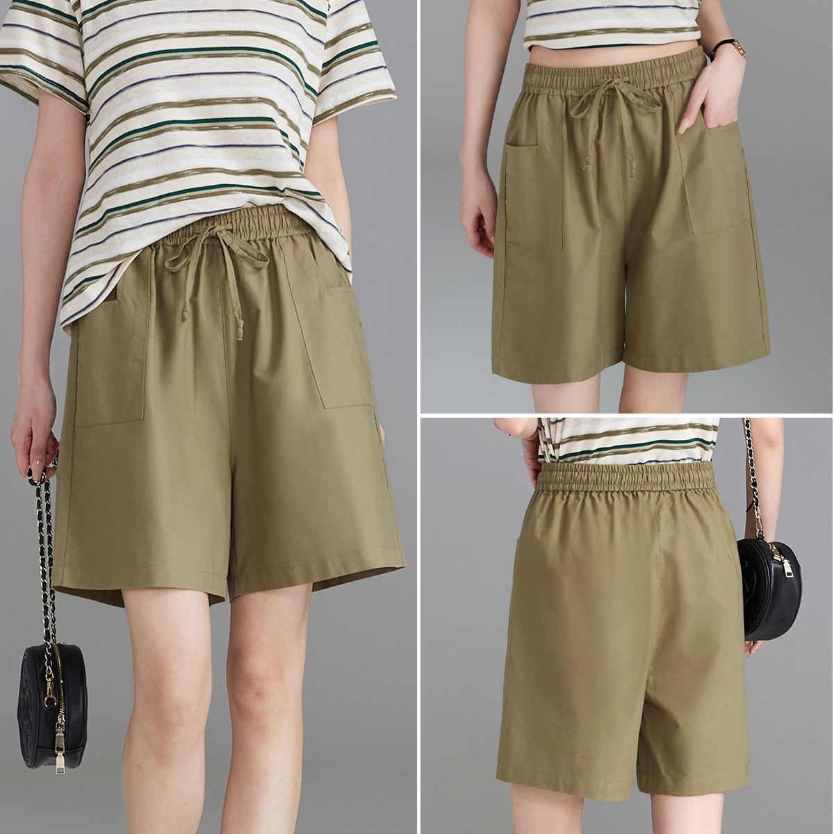 【纯棉透气】夏日薄款森系文艺纯色大口袋五分短裤A字阔腿休闲裤 378049