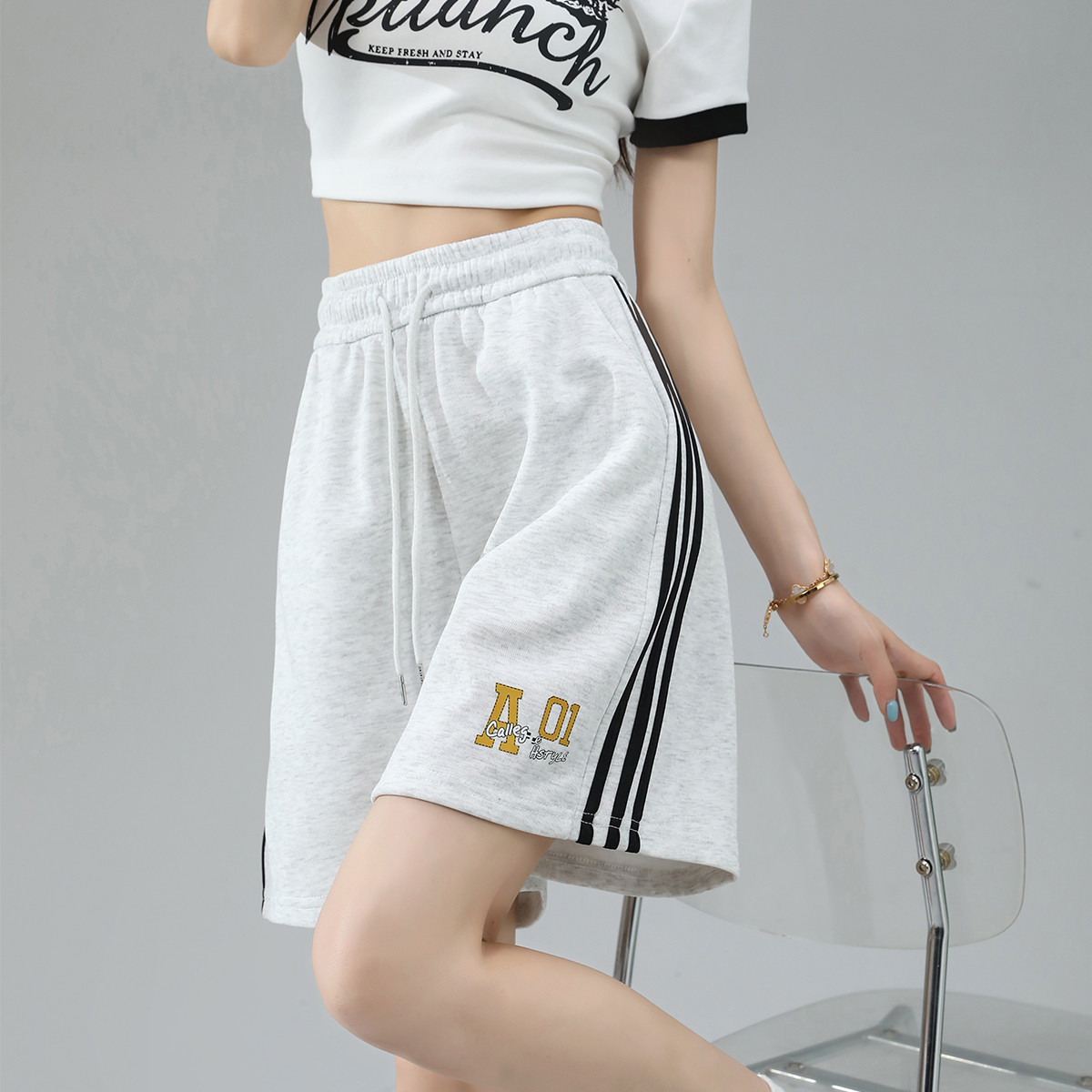 侧边条纹装饰松紧腰显瘦短裤夏季舒适休闲阔腿女式休闲裤 544203
