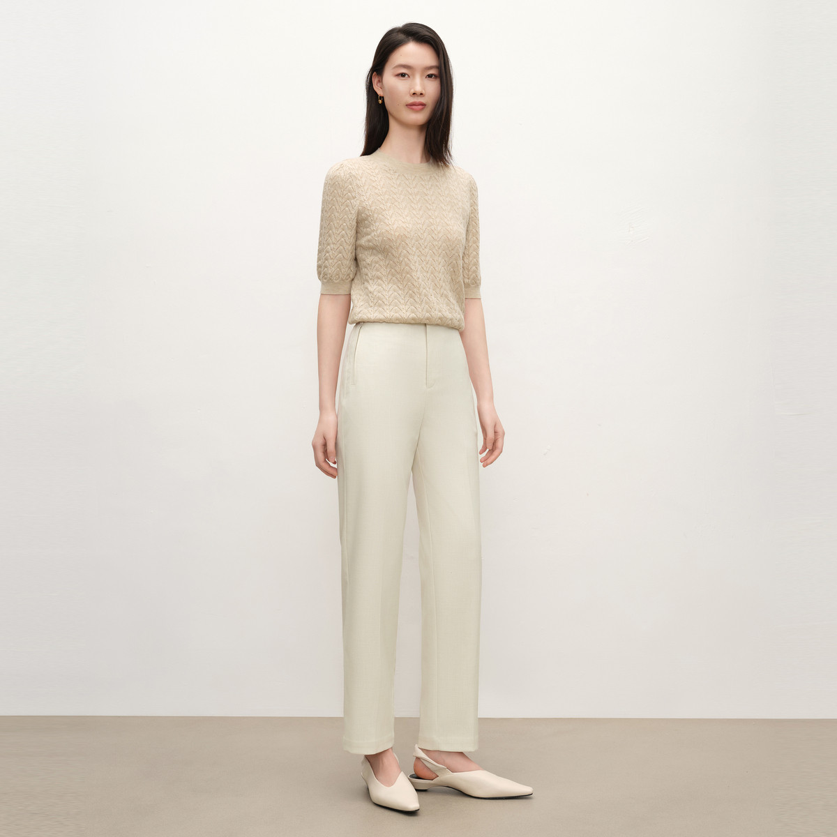 玖姿旗下安娜蔻系列都市休闲百搭松紧腰舒适直筒裤女装夏季 112012