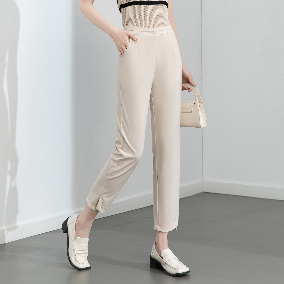 夏季薄款透气高腰气质时尚通勤百搭金属装饰直筒休闲裤女 793439