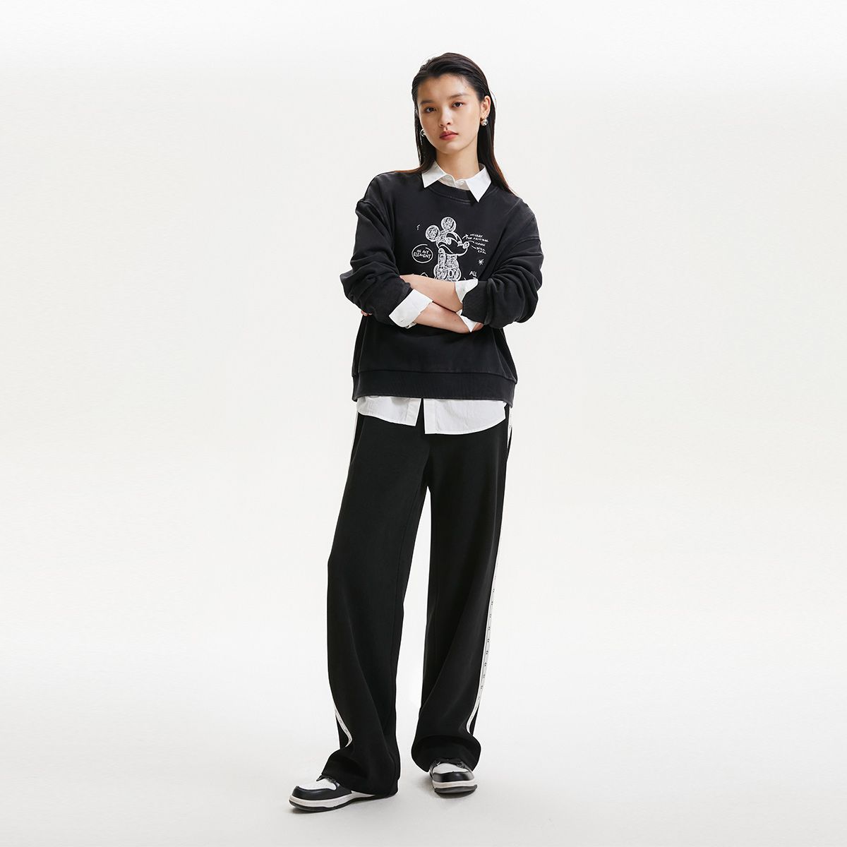 地素烫钻长裤春秋运动休闲棉质阔腿裤女 771723
