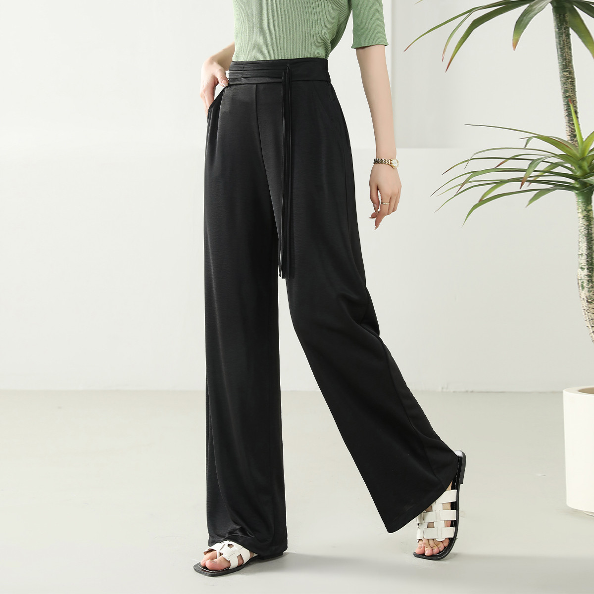 【多褶显瘦】慵懒垂坠高级感阔腿裤女夏季高腰系绳通勤百搭休闲裤 379743