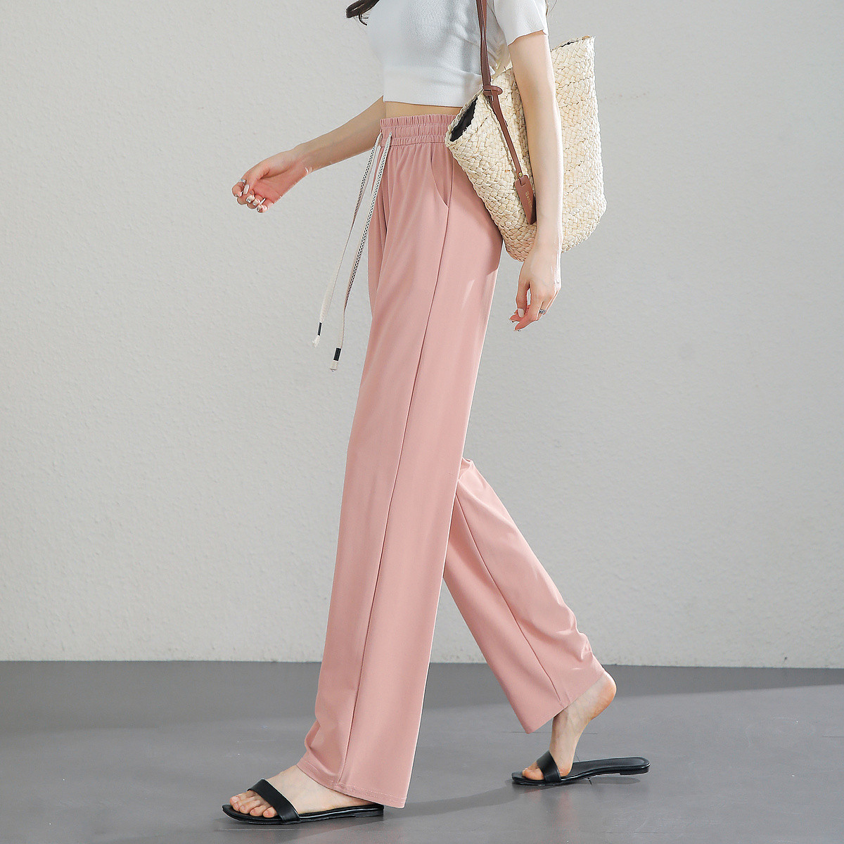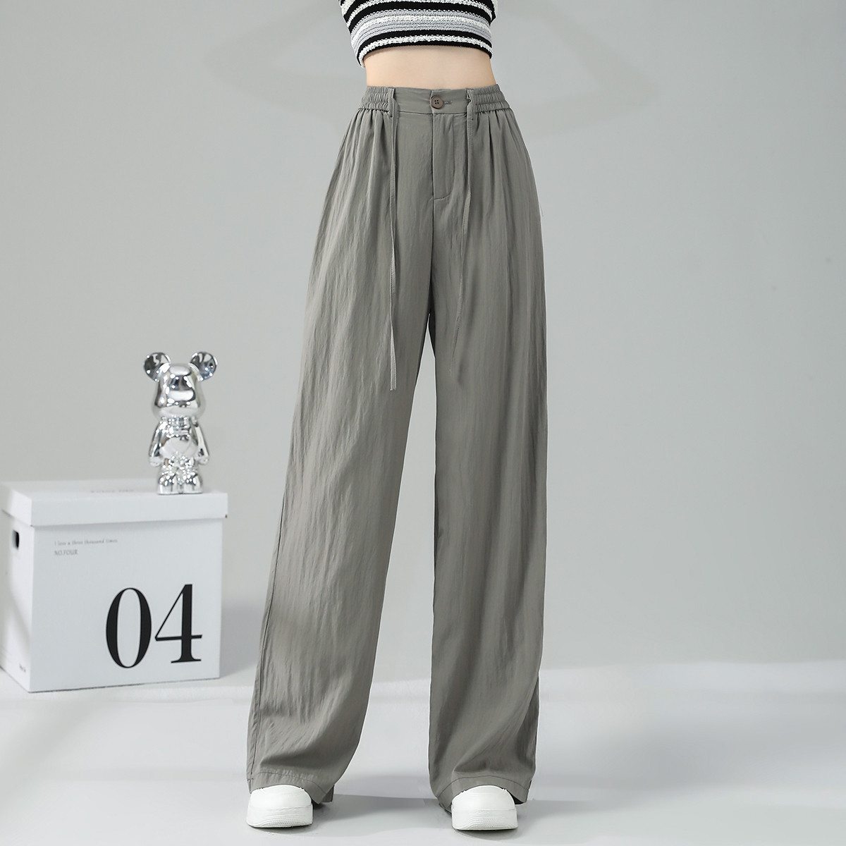 【2024夏季】垂感高腰裤直筒休闲裤女宽松阔腿西装裤女 057108