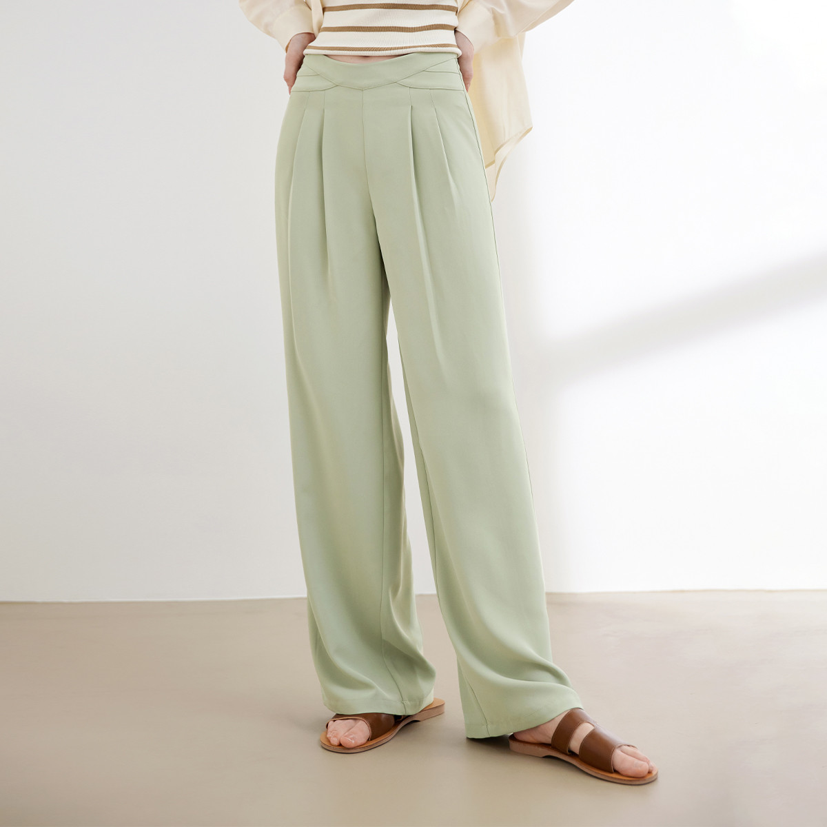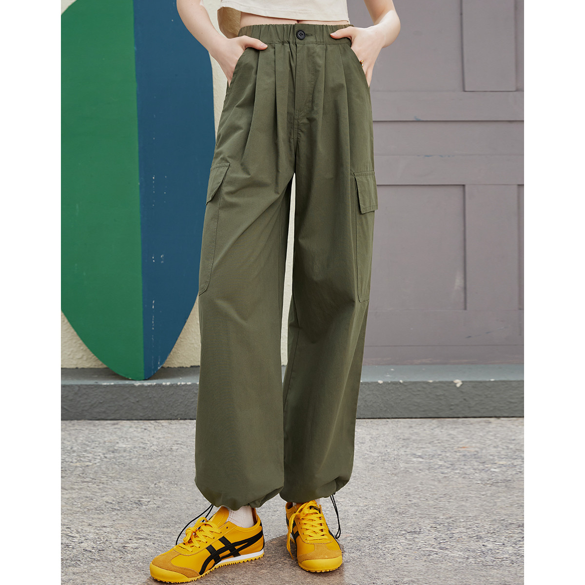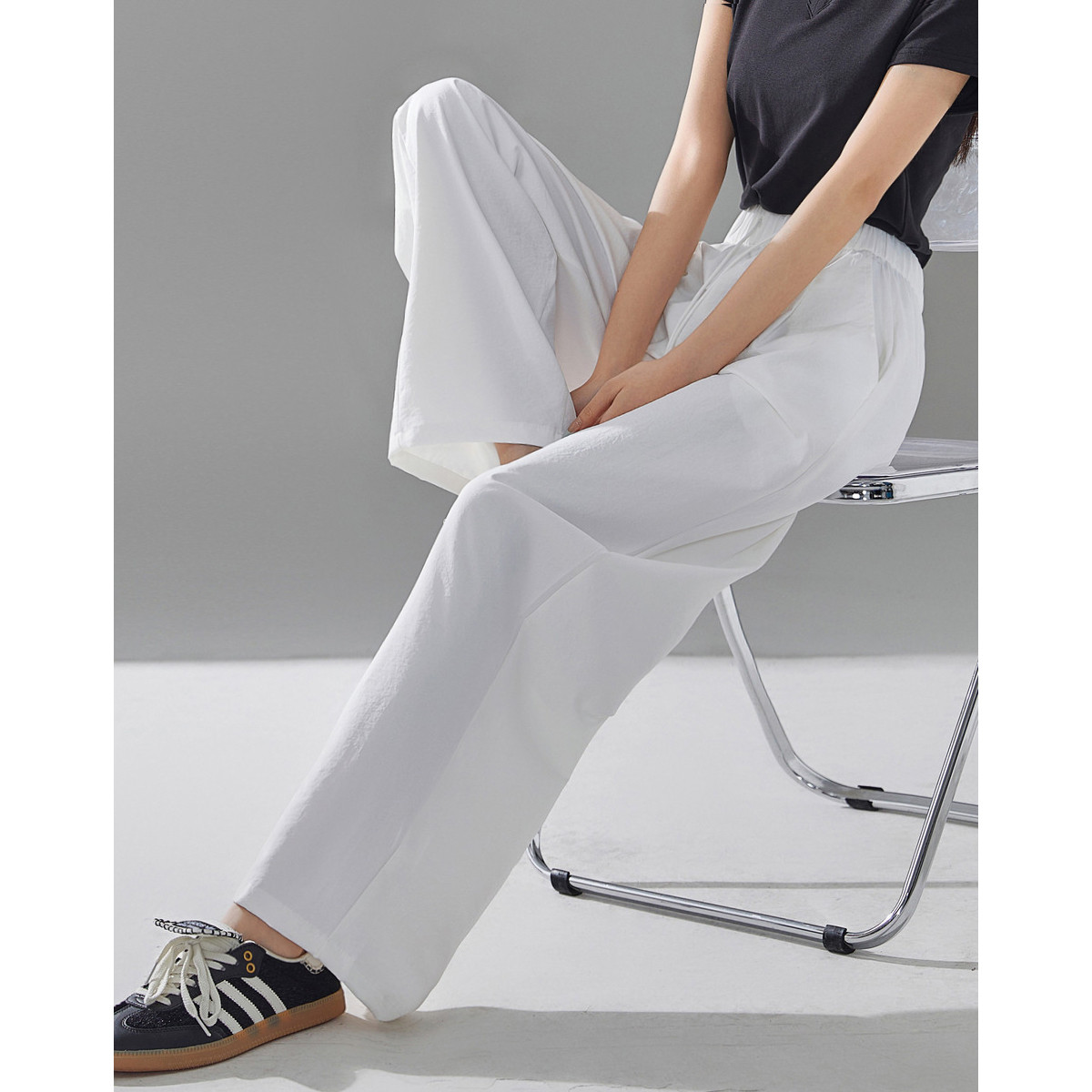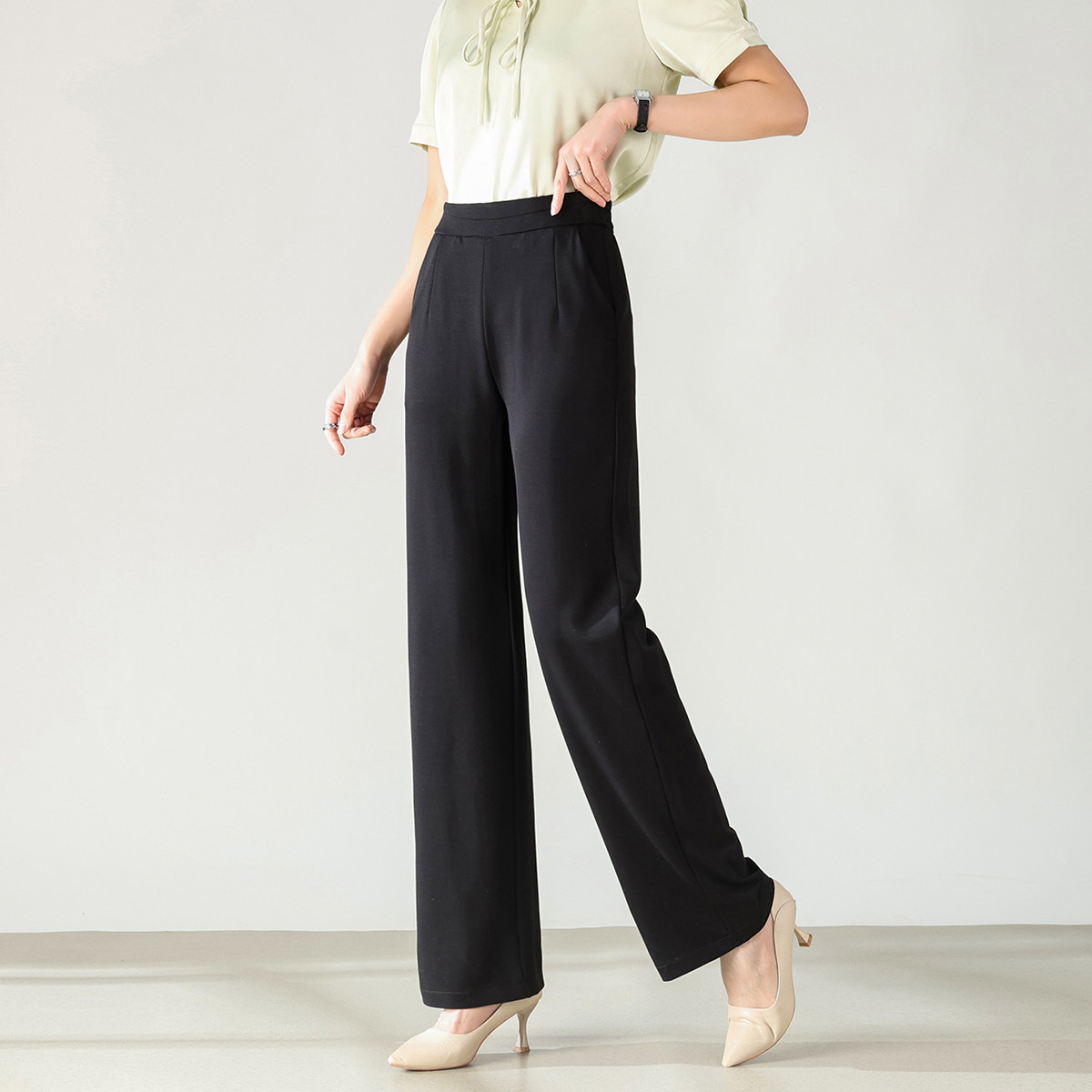 松紧腰春季舒适长裤垂感时尚百搭薄款裤子设计感女式休闲裤 936651