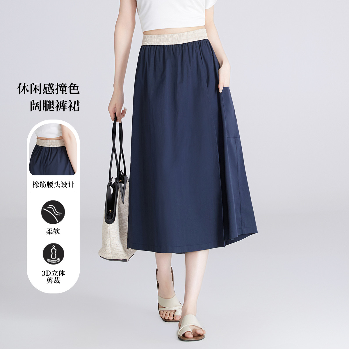 【文艺小众拼接裤裙】夏季薄款凉爽舒适宽松A字阔腿裤女款八分裤 304001