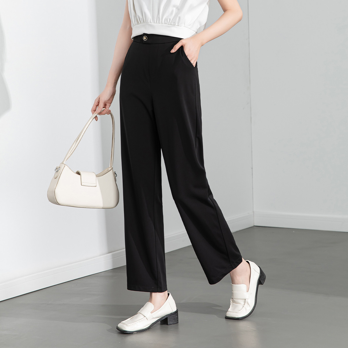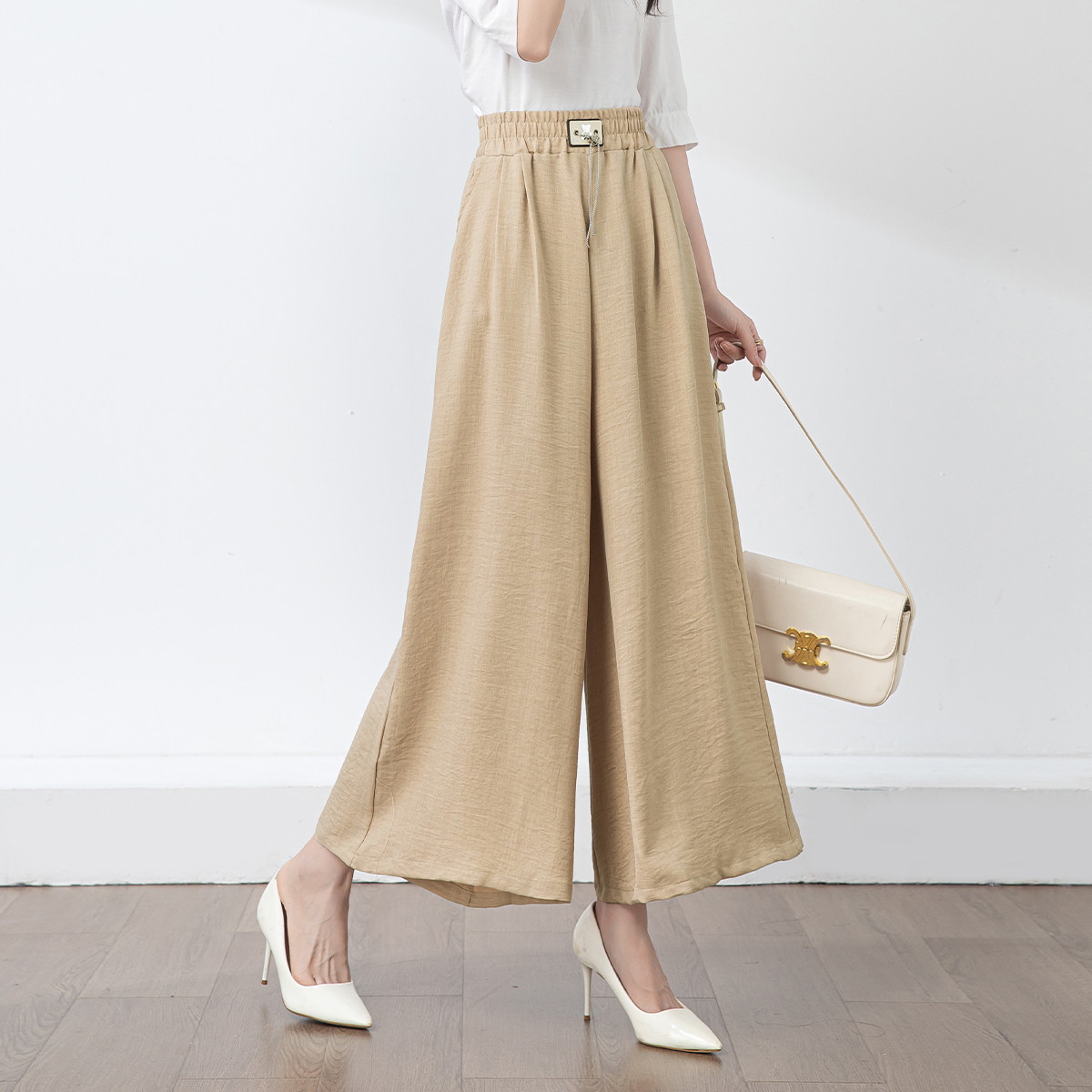 夏季薄款松紧腰垂感透气阔腿裤时尚百搭通勤宽松休闲裤 825375