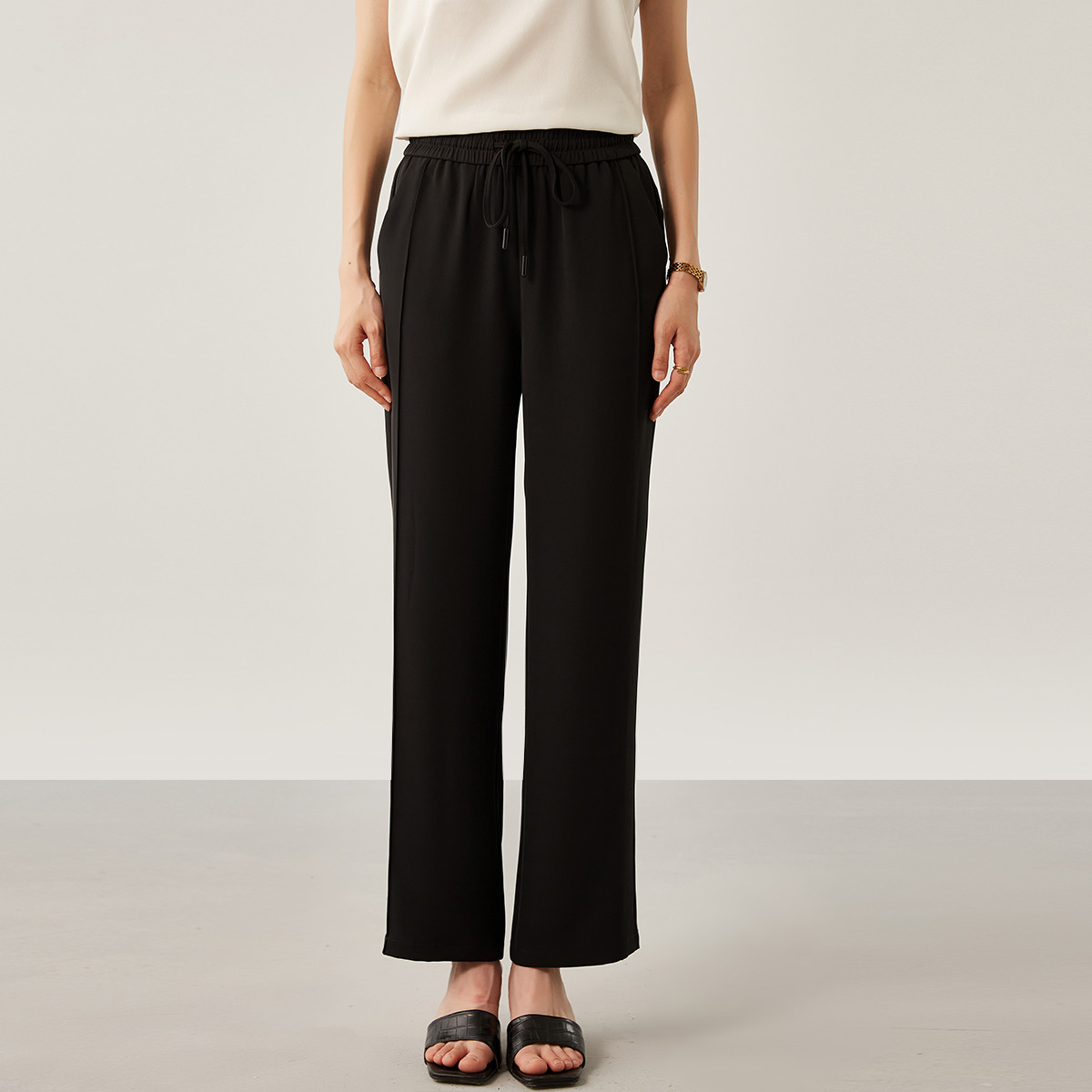玖姿旗下安娜蔻系列都市休闲百搭松紧腰舒适直筒裤女装夏季 009612