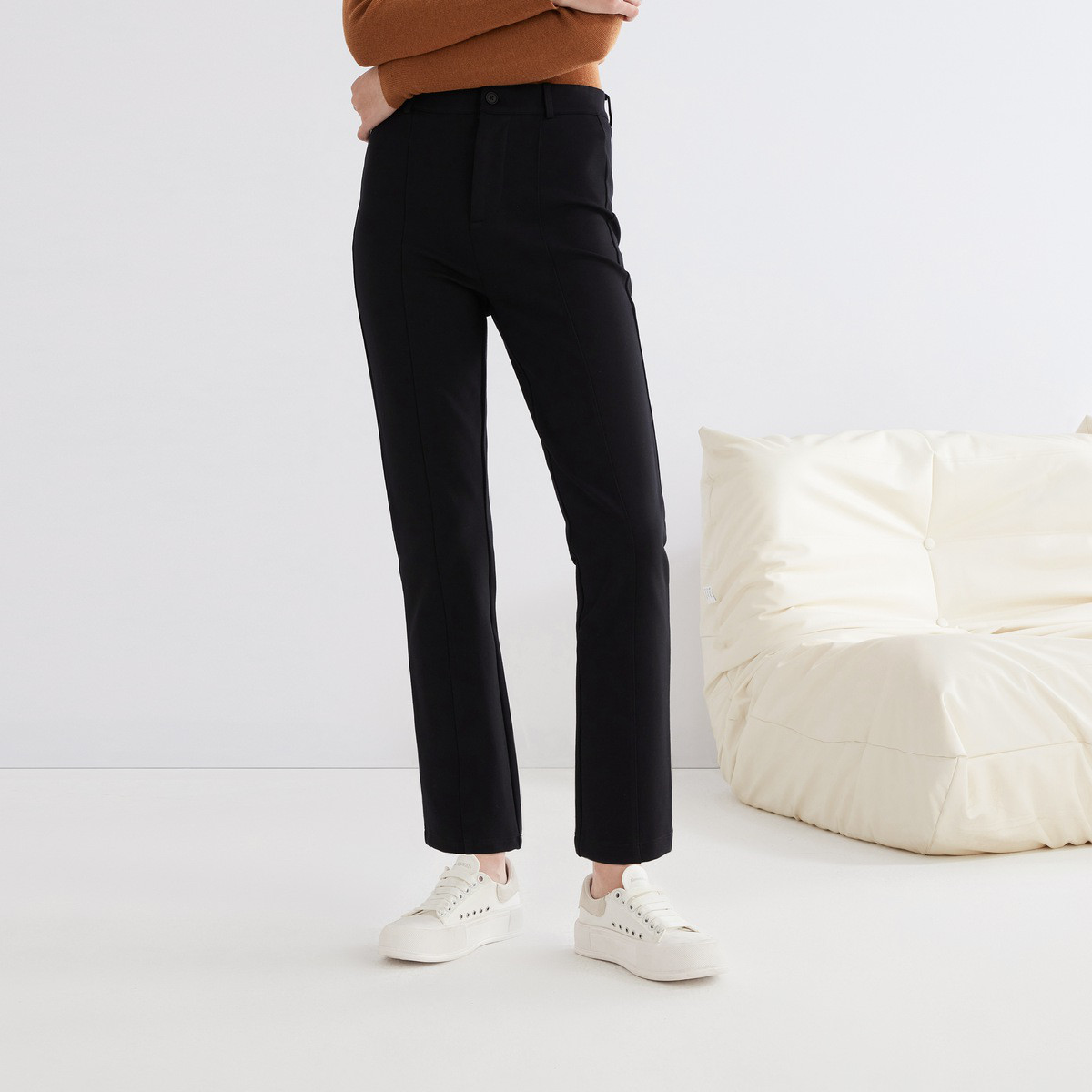 女装秋季纯色松紧腰显瘦气质直筒裤时尚百搭通勤休闲九分裤 100895
