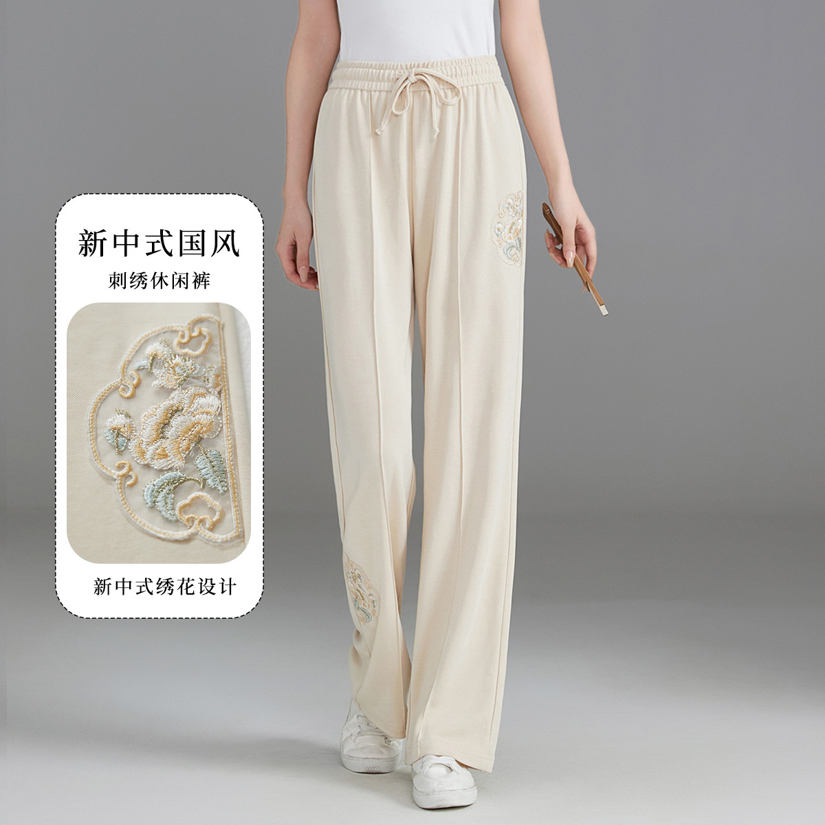 【清凉透气】新中式刺绣遮胯显腿直立体中缝隙设计阔腿裤女款长裤 273857