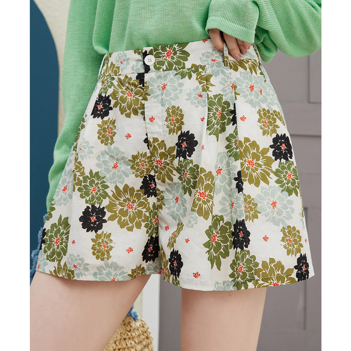 【漫画腿立现】夏云肉感纯棉高腰藏肉A字西装短裤阔腿五分休闲裤 256513