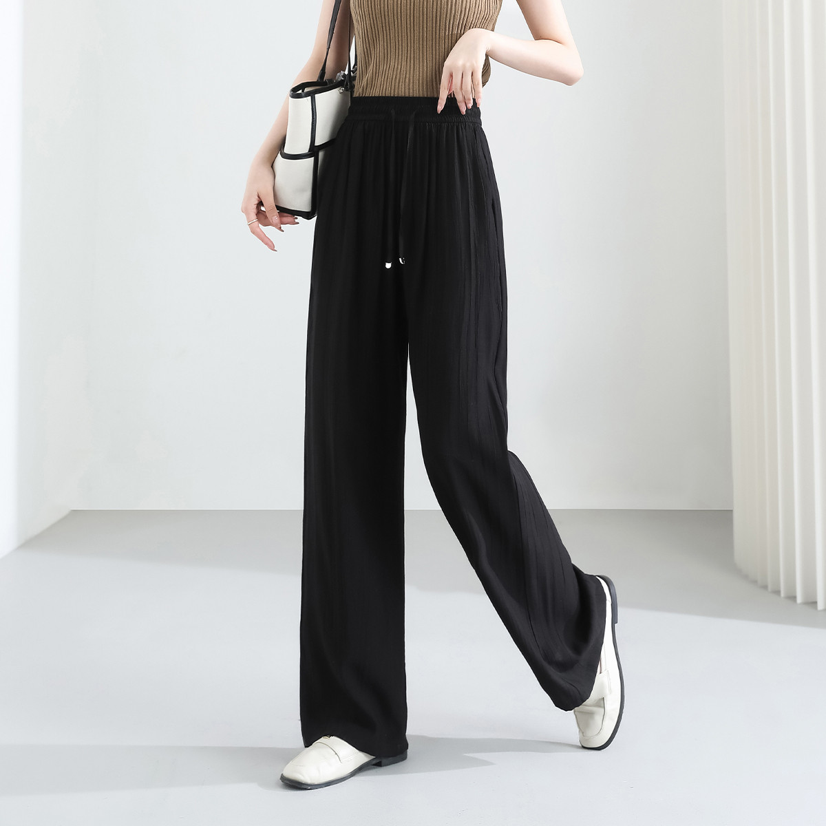 女装秋季薄款褶皱风慵懒感阔腿裤时尚百搭冰爽丝滑垂感休闲裤 784223