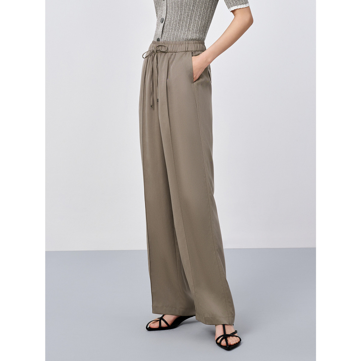 【含羊毛】美拉德阔腿裤女加厚春夏时髦保暖系绳休闲裤 744543