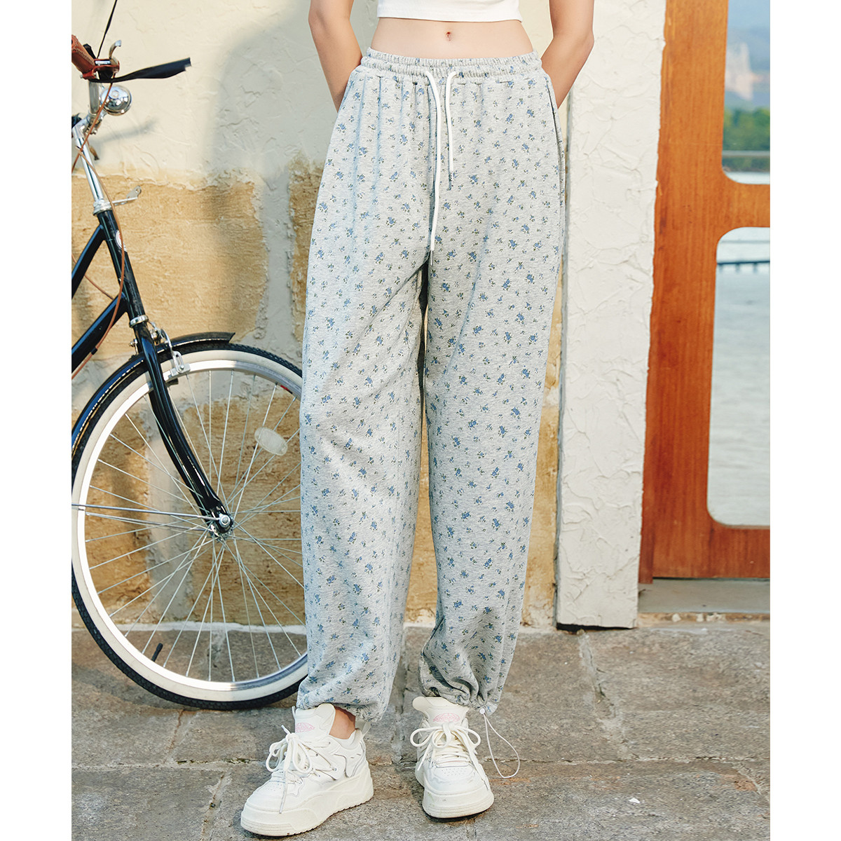 美式复古小碎花设计感宽松束脚裤夏季高腰百搭女式休闲裤 343837
