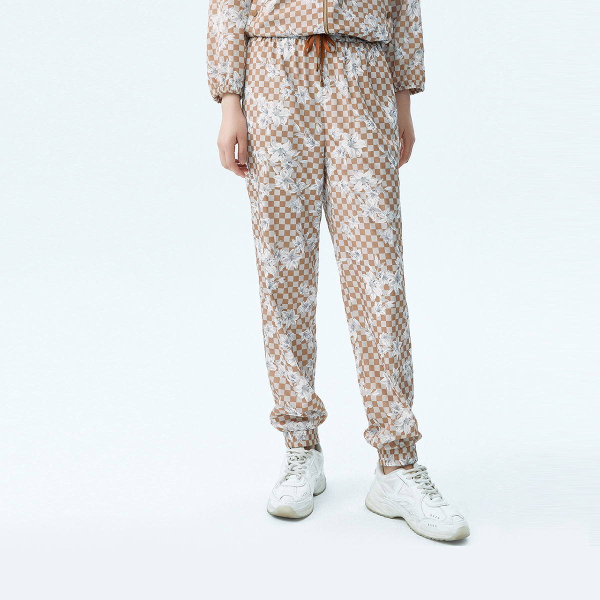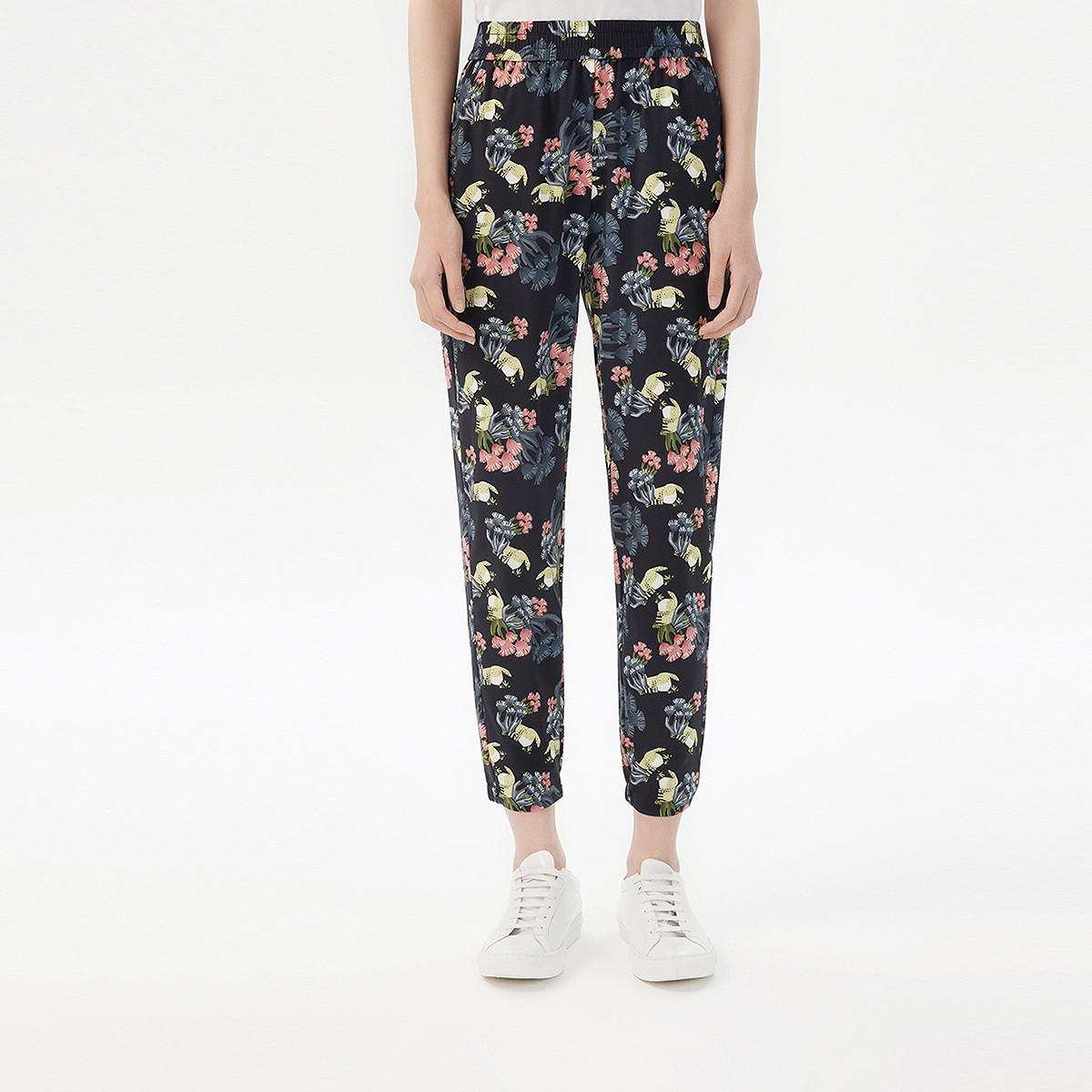 夏季植物印花高腰休闲小脚裤子女通勤设计感朗姿集团旗下俪雅 160985