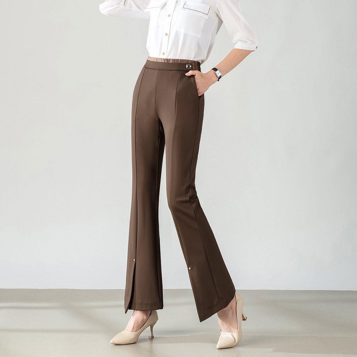 女装秋季气质通勤薄款直筒裤时尚百搭开叉设计感休闲裤女 994143