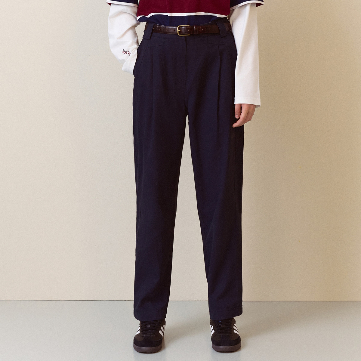 小熊春秋款卡其色休闲长裤子气质时尚通勤阔腿直筒裤 964673