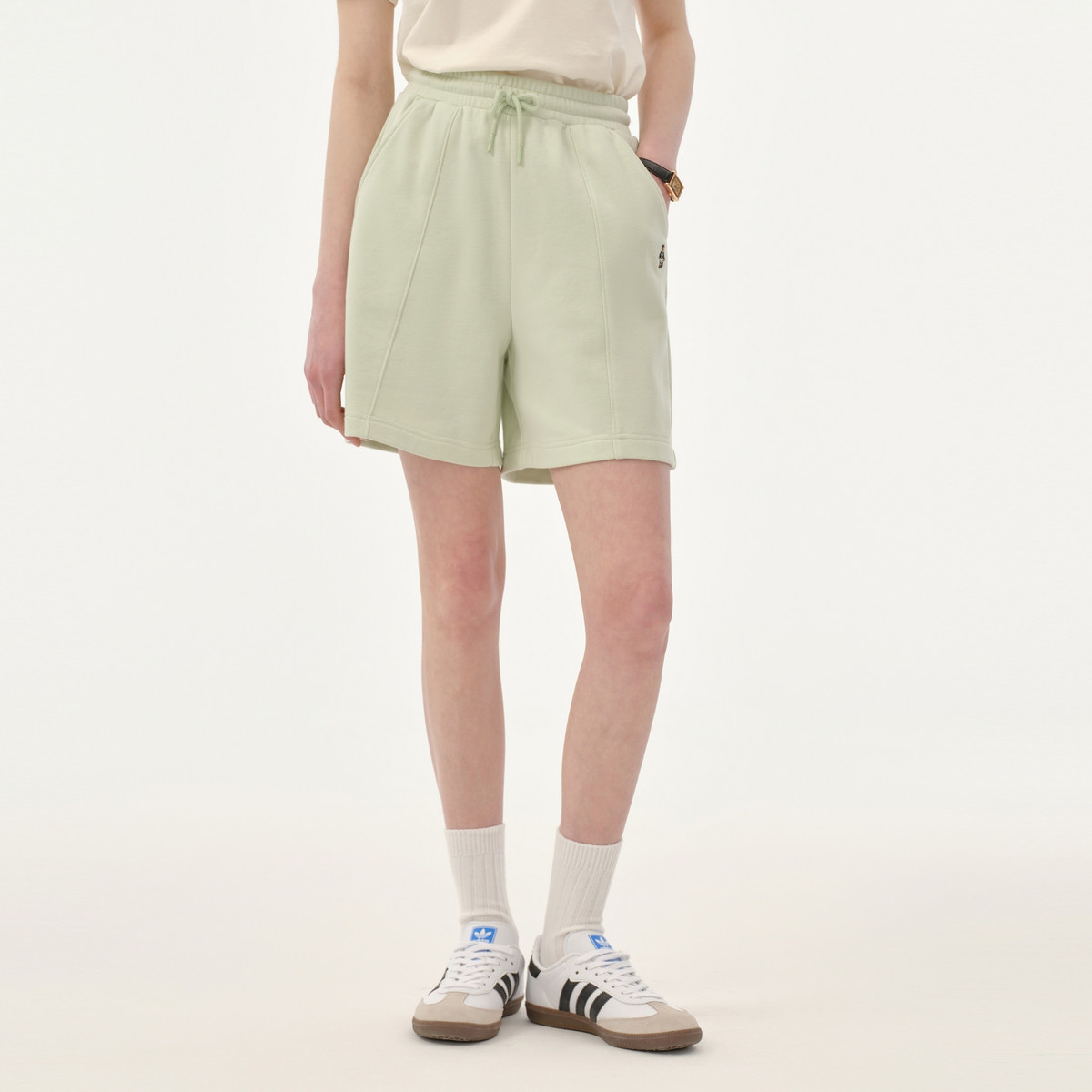 运动短裤女夏季马卡龙色直筒小熊刺绣裤子女 594689